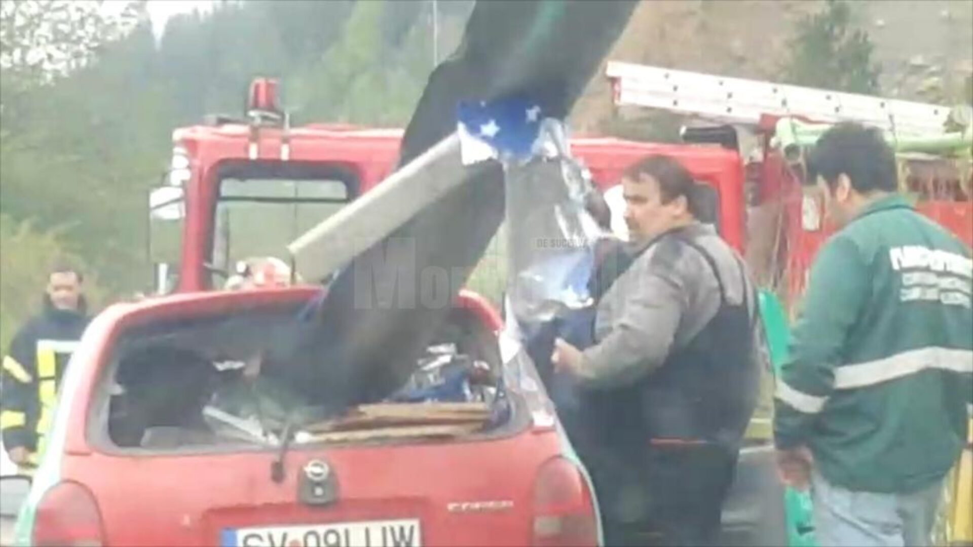 Accidentul a avut loc joi după amiază, în zona comunei Pojorâta, pe DN 17. Șoferul unui autoturism Opel, care circula în jurul orei 15.00 prin zona comunei Pojorâta, a pierdut la un moment dat controlul asupra direcției și a intrat frontal cu mașina în parapetul metalic longitudinal de pe marginea drumului. Din cauza vitezei, impactul a fost atât de puternic, încât parapetul metalic a pătruns prin zona motorului, a trecut prin parbrizul mașinii, a traversat-o longitudinal, după care a ieșit prin lunetă. Chiar dacă parapetul metalic a ieșit prin partea din spate a mașinii preț de câțiva metri, mașina făcând o cursă de circa 10 metri cu parapetul trecând prin interior, șoferul mașinii a scăpat cu câteva răni ușoare, fiind preluat de un echipaj al ambulanței și transportat la spital. Pentru a nu se crea confuzie, în fotografiile surprinse mașina este de culoare verde, iar partea din spate, haionul, are culoarea roșie. Polițiștii fac cercetări pentru a stabili cu exactitate cum s-a produs accidentul, în cadrul unui dosar penal deschis pentru vătămare corporală din culpă. Balustrada implicată în accident fusese schimbată în timpul săptămânii trecute, după ce fusese distrusă în urma unui alt accident, petrecut în același loc.