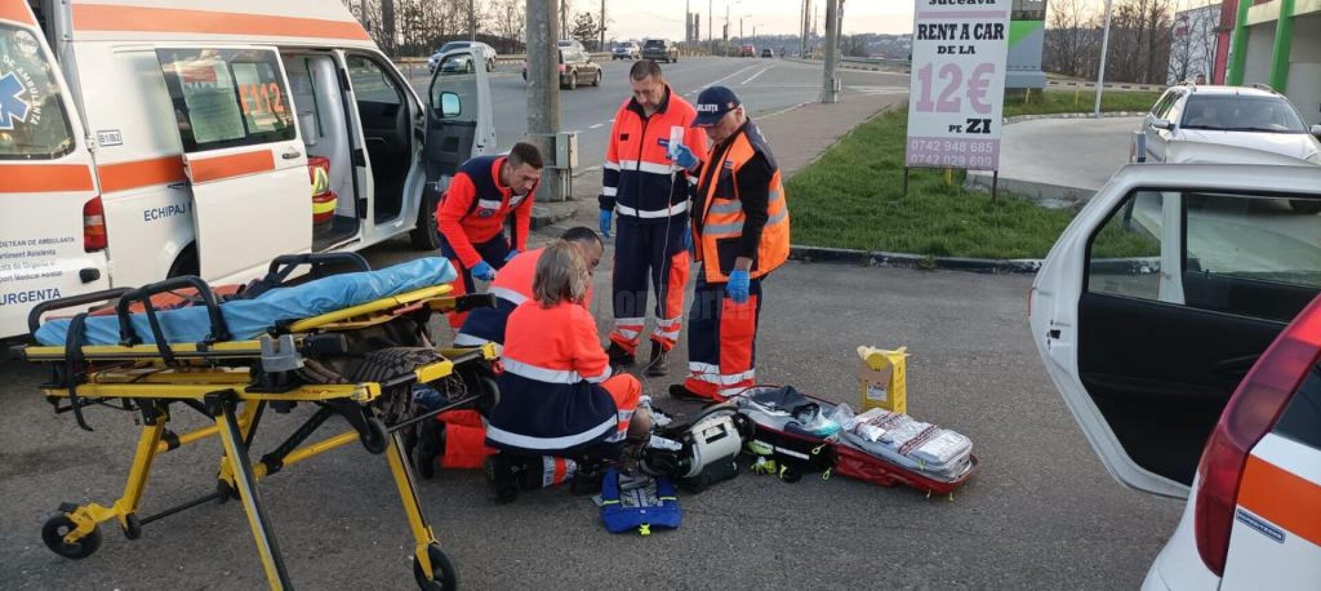 La fața locului au intervenit mai multe persoane pentru acordarea primului ajutor, iar în cele din urmă a fost solicitat spirjinul unui echipaj de pe ambulanță.