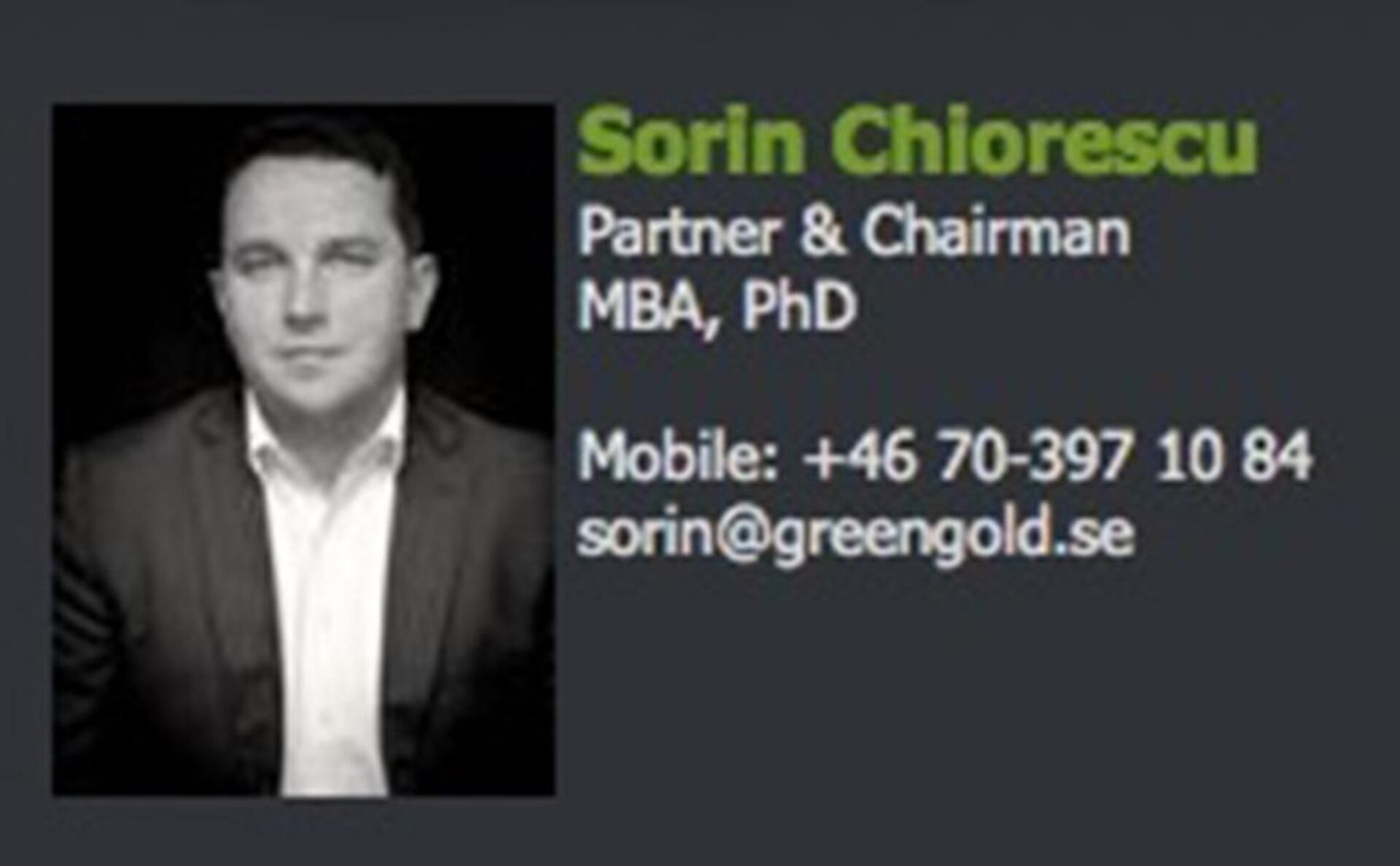 În fapt, un suedez de origine română reprezintă la București atât interesele Universității Harvard, cât și pe cele ale grupului nordic care i-a cumpărat în ultimele luni o parte din păduri. Sorin Chiorescu, 41 de ani, este fondator și director executiv al grupului suedez Greengold, care deține întinse suprafețe forestiere în România. Concomitent, Chiorescu a fost angajat de fondul de investiții al Universității Harvard să-i administreze o fabrică de placaj din Călărași.