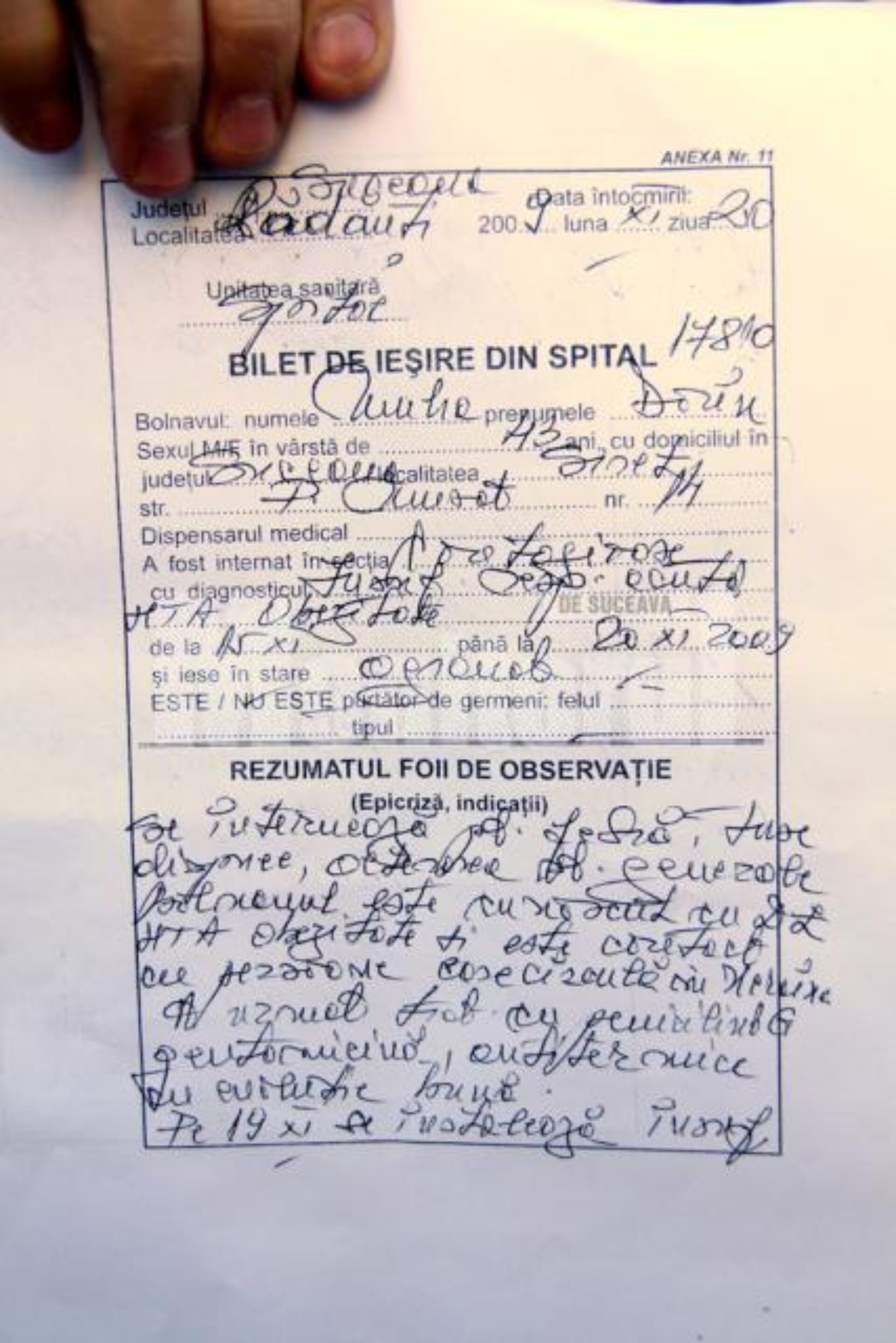 „Am fost la spitalul din Rădăuți să-mi fac analize și m-au trimis la Radiologie. Acolo, am auzit-o pe doctoriță strigând «să-i ia dracu’ pe pacienții de la Boli Infecțioase». Mi-au făcut un film, dar probe tot nu mi-au recoltat, au zis că de-abia săptămâna viitoare, luni, să mă prezint la Suceava, la Direcția de Sănătate Publică”, a povestit ieri femeia.