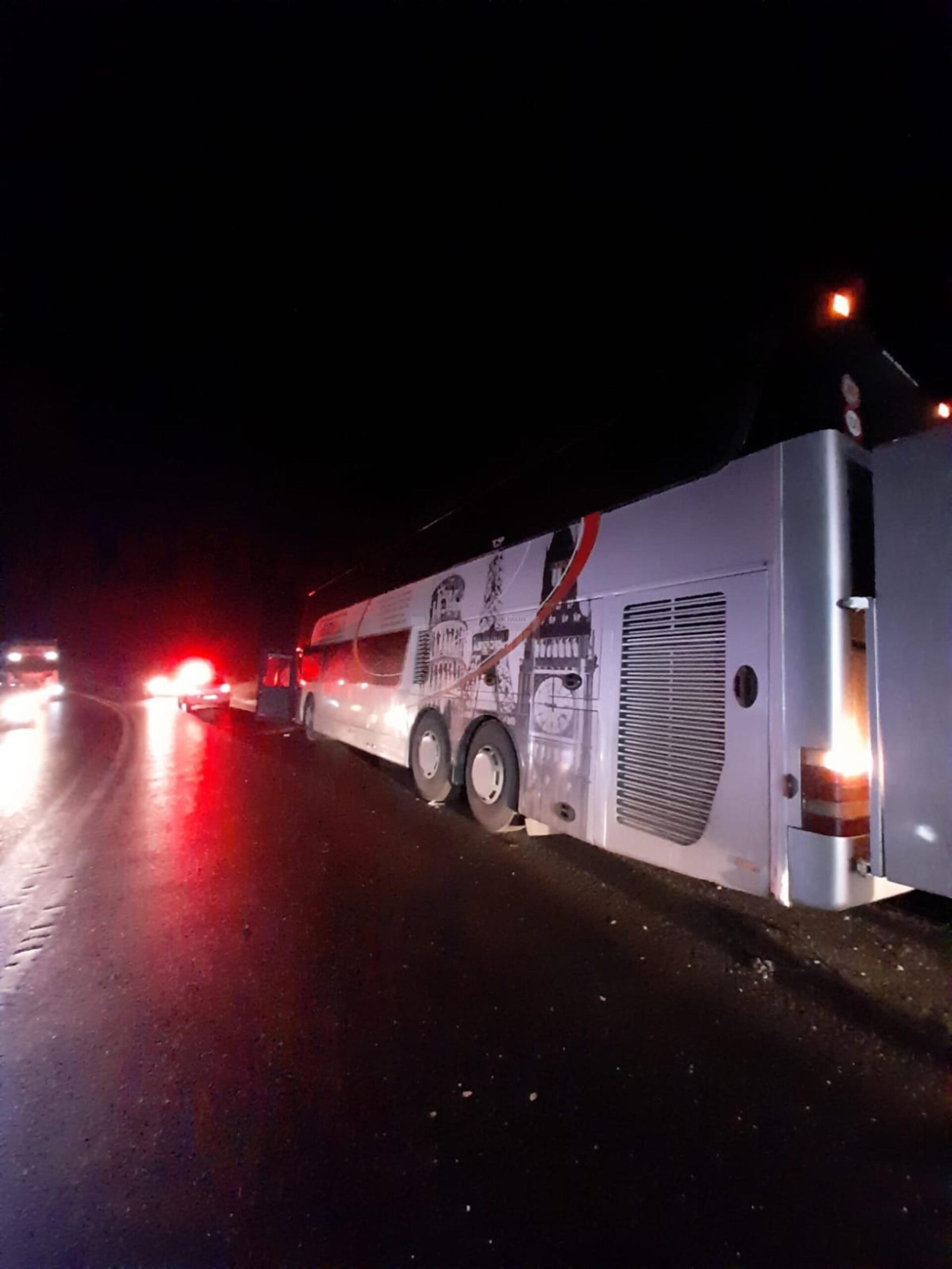 Autocarul, care se deplasa pe ruta Iași – Lyon (Franța), avea 60 de persoane la bord (cu tot cu victima transportată ulterior la spital), iar avariile suferite nu i-au permis să-și continue drumul.