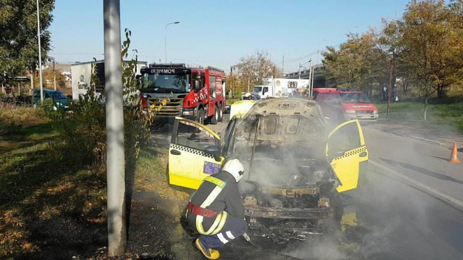 Un autoturism taxi a luat foc în trafic, în zona pasarelei de peste calea ferată din cartierul Burdujeni al municipiului Suceava. Alarma de incendiu s-a dat vineri, în jurul orei 14.50.