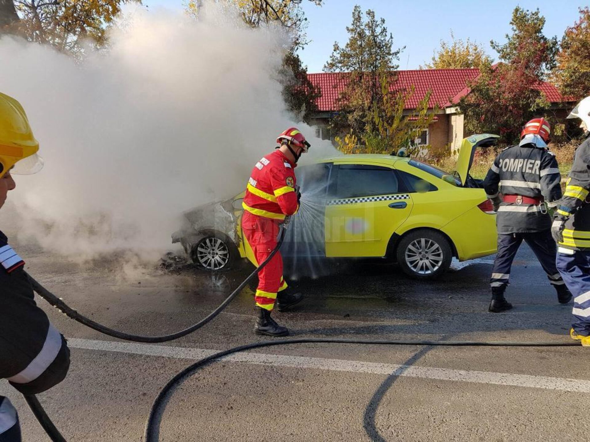 Un autoturism taxi a luat foc în trafic, sub pasarela din cartierul Burdujeni. Alarma de incendiu s-a dat vineri, la ora 14.53. La fața locului au intervenit militarii Detașamentului de Pompieri Suceava cu o autospecială pentru descarcerare și una cu apă și spumă.Incendiul s-a manifestat la compartimentul motor și a fost destul de puternic, distrugând partea din față a mașinii. „Cauza probabilă de izbucnire a incendiului a fost efectul termic al curentului electric, generat de un conductor electric defect.Nu s-au înregistrat victime, iar colegii noștri au salvat restul autoturismului”, se arată într-un comunicat al Inspectoratului pentru Situații de Urgență Suceava.