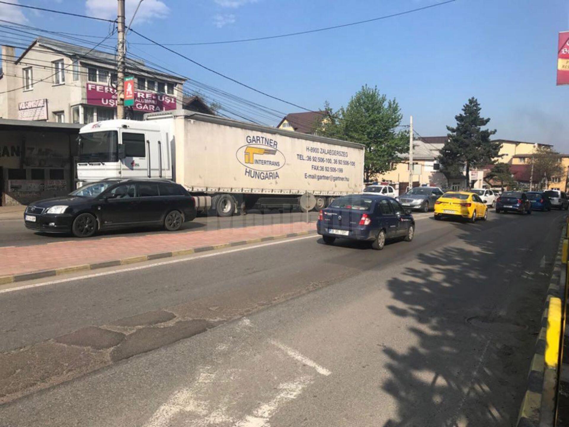 Un tir defect a îngreunat ore în șir traficul la intrarea în municipiul Suceava