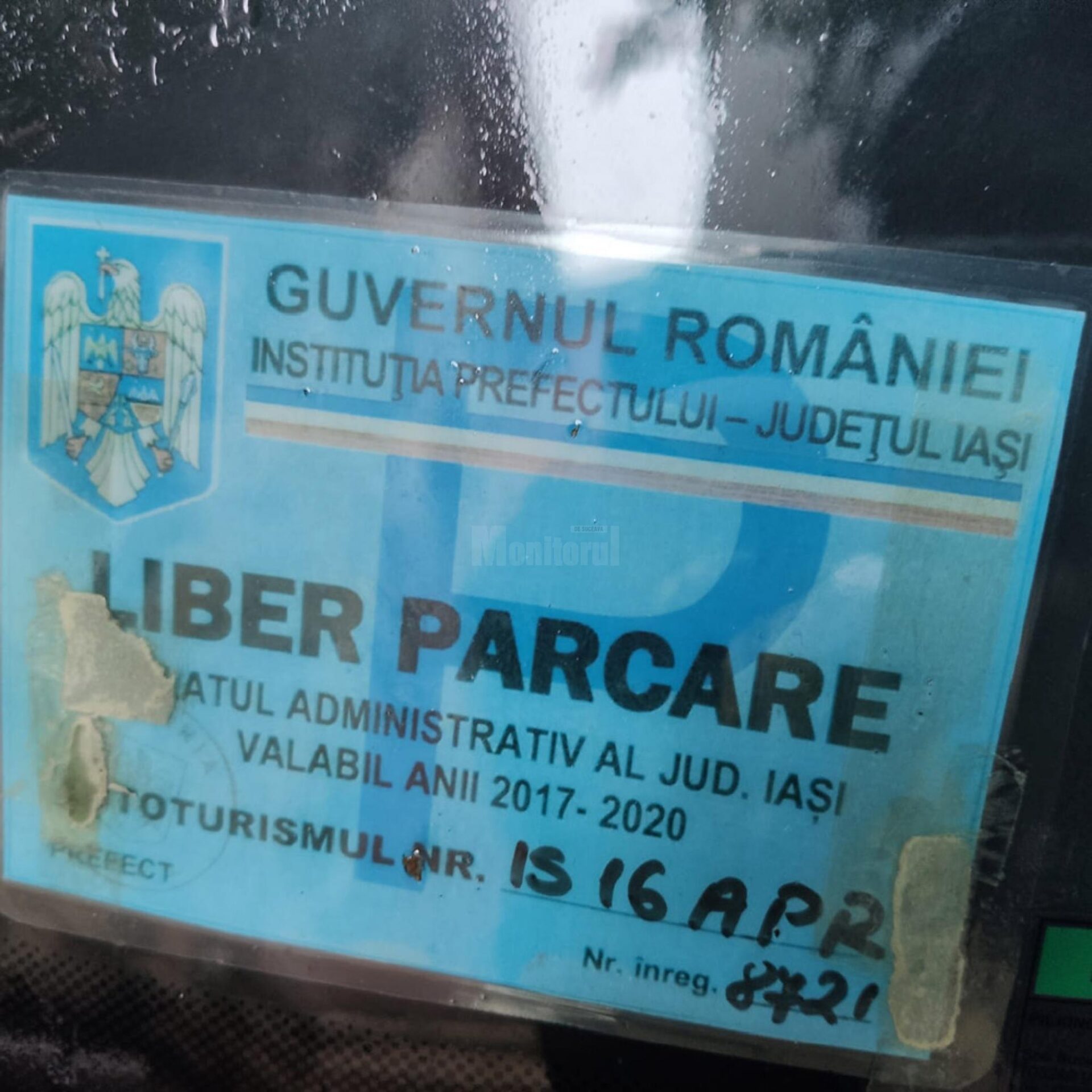 Respectivul a lăsat drept „garanție”, în parbriz, o legitimație de ”Liber parcare”, care apărea că ar fi emisă de Instituția Prefectului – județul Iași. Respectiva legitimație era valabilă în perioada 2017-2020, bineînțeles doar pentru Iași și nici acolo pentru astfel de parcări. Este posibil ca acea legitimație nici să nu fi fost pentru mașina parcată sâmbătă dimineață la Suceava (IS-16-APR).