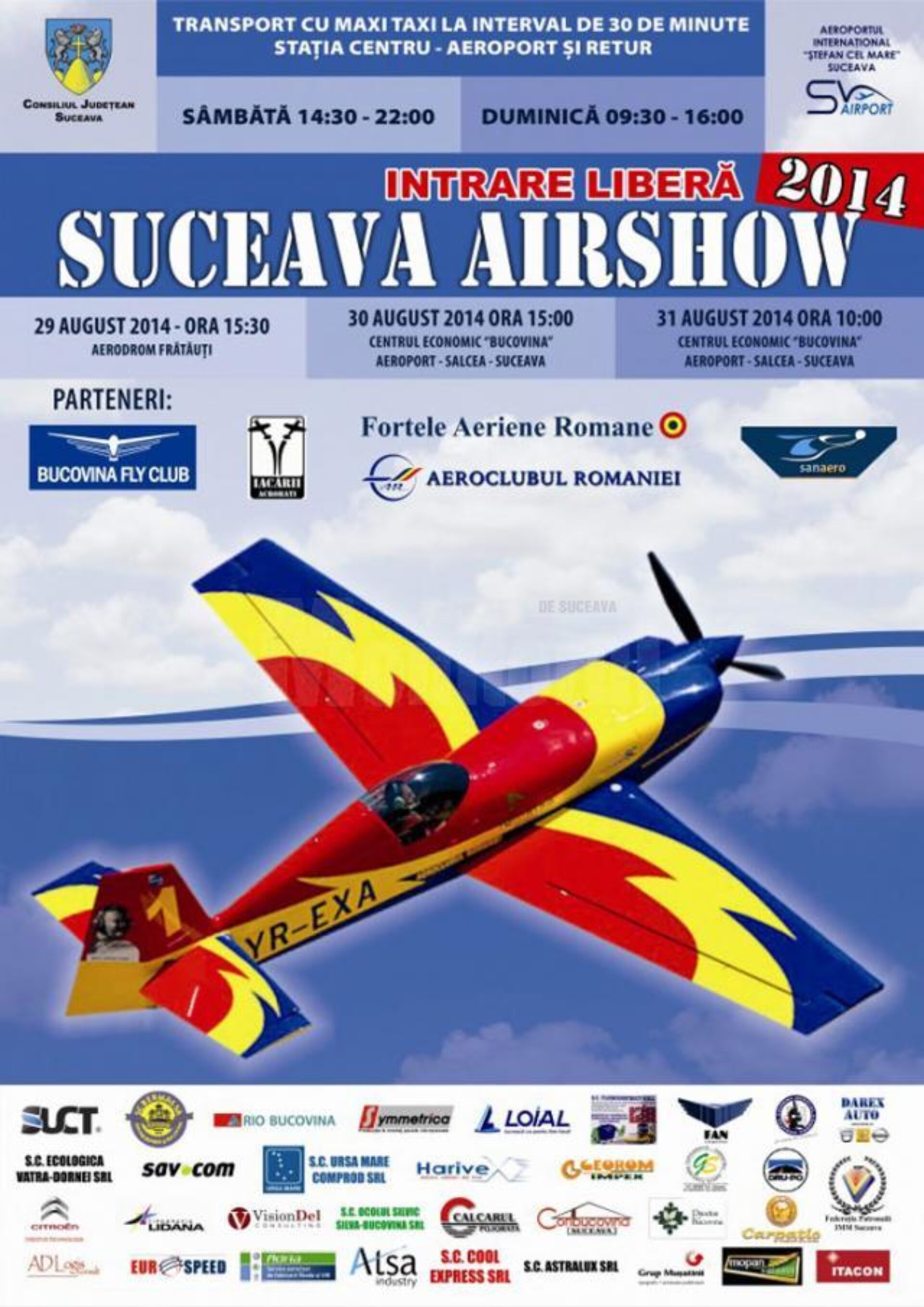 Consiliul Județean Suceava și Aeroportul Internațional „Ștefan cel Mare” Suceava, având ca parteneri Bucovina Fly Club, Forțele Aeriene Române și Aeroclubul României, organizează în intervalul 29-31 august un show aviatic.