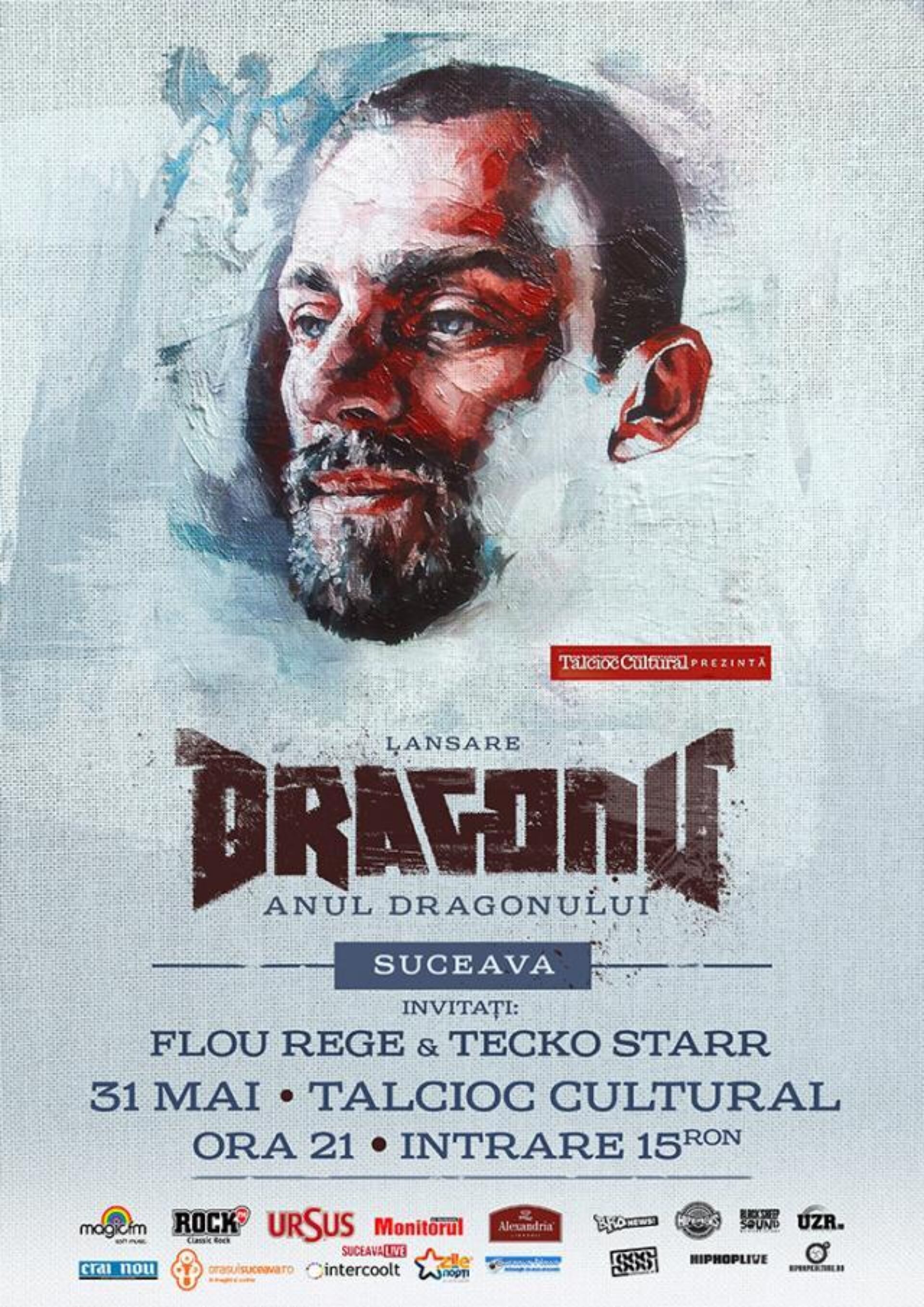 La ora 21.00, la Talcioc Cultural, Dragonu lansează albumul „Anul Dragonului”. O seară incendiară alături de Dragonu și invitații săi, Flou Rege și Tecko Starr. Un eveniment memorabil. 15 lei biletul de intrare. Rezervări la tel. 0755 222 880.