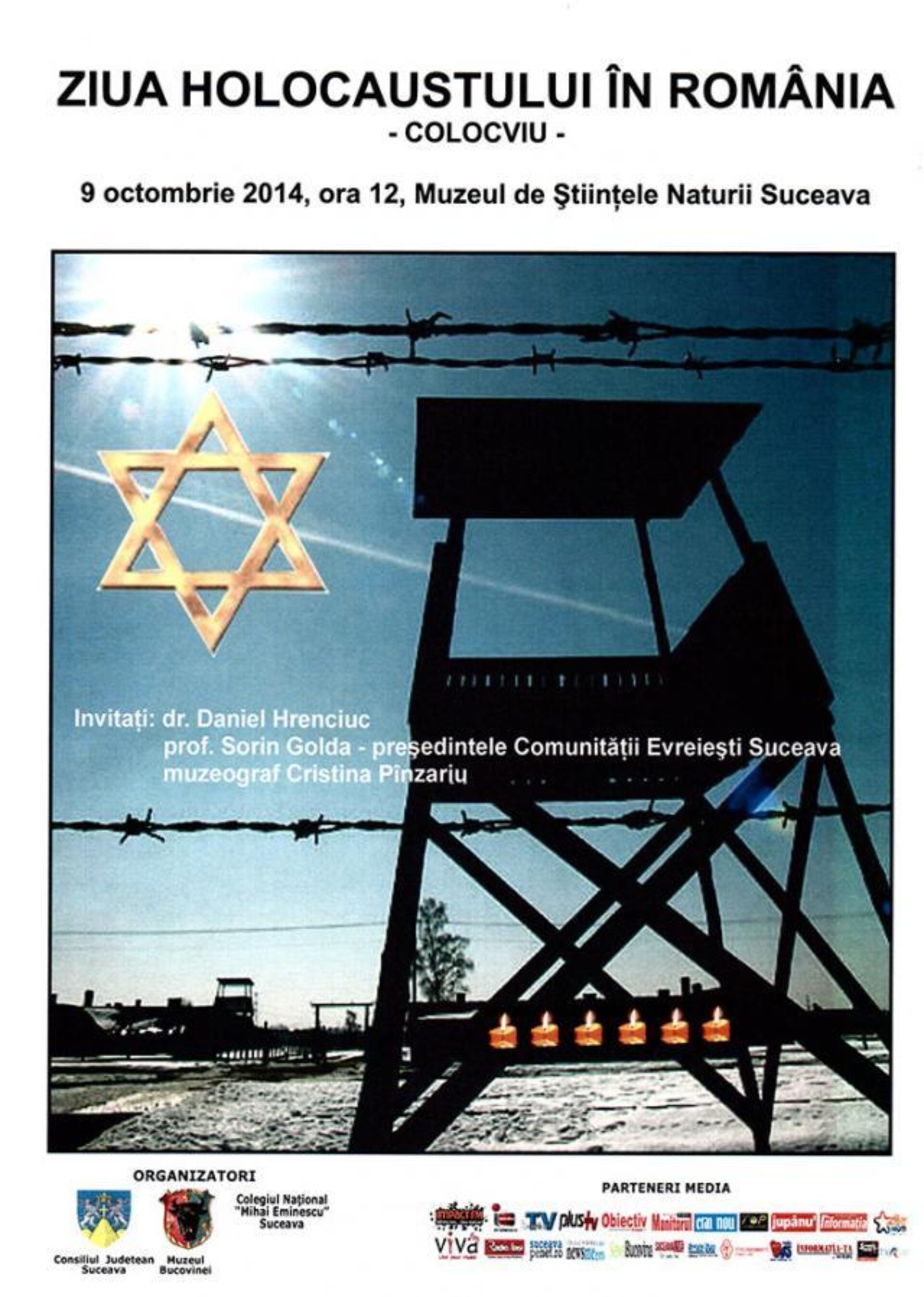 În sala de festivități a Muzeului de Științele Naturii Suceava are loc, începând cu ora 12.00, un colocviu dedicat Zilei Holocaustului în România, zi la care, în anul 1941, a început deportarea forțată a populației evreiești, din Basarabia și Bucovina, în Transnistria. În cadrul colocviului vor susține comunicări dr. în istorie Daniel Hrenciuc, care va prezenta și cartea „O istorie care se stinge: Evreii din Rădăuți”, prof. Sorin Golda, președintele Comunității Evreiești Suceava, și muzeograful Cristina Pînzariu, de la Muzeul Bucovinei.