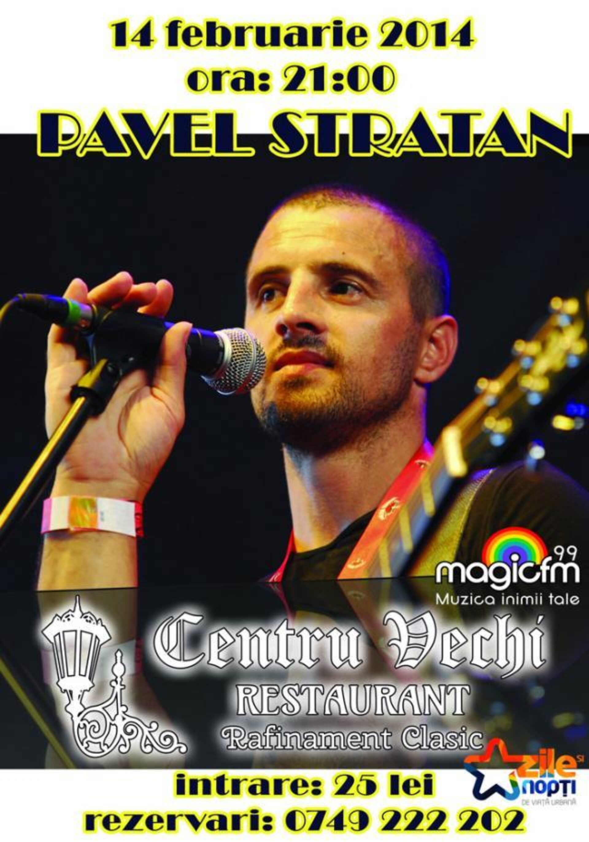 Concert Pavel Stratan, la Restaurantul Centru Vechi – Rafinament Clasic, de la ora 21:00. Intrarea este 25 de lei. Rezervări la telefon 0749 222 202.