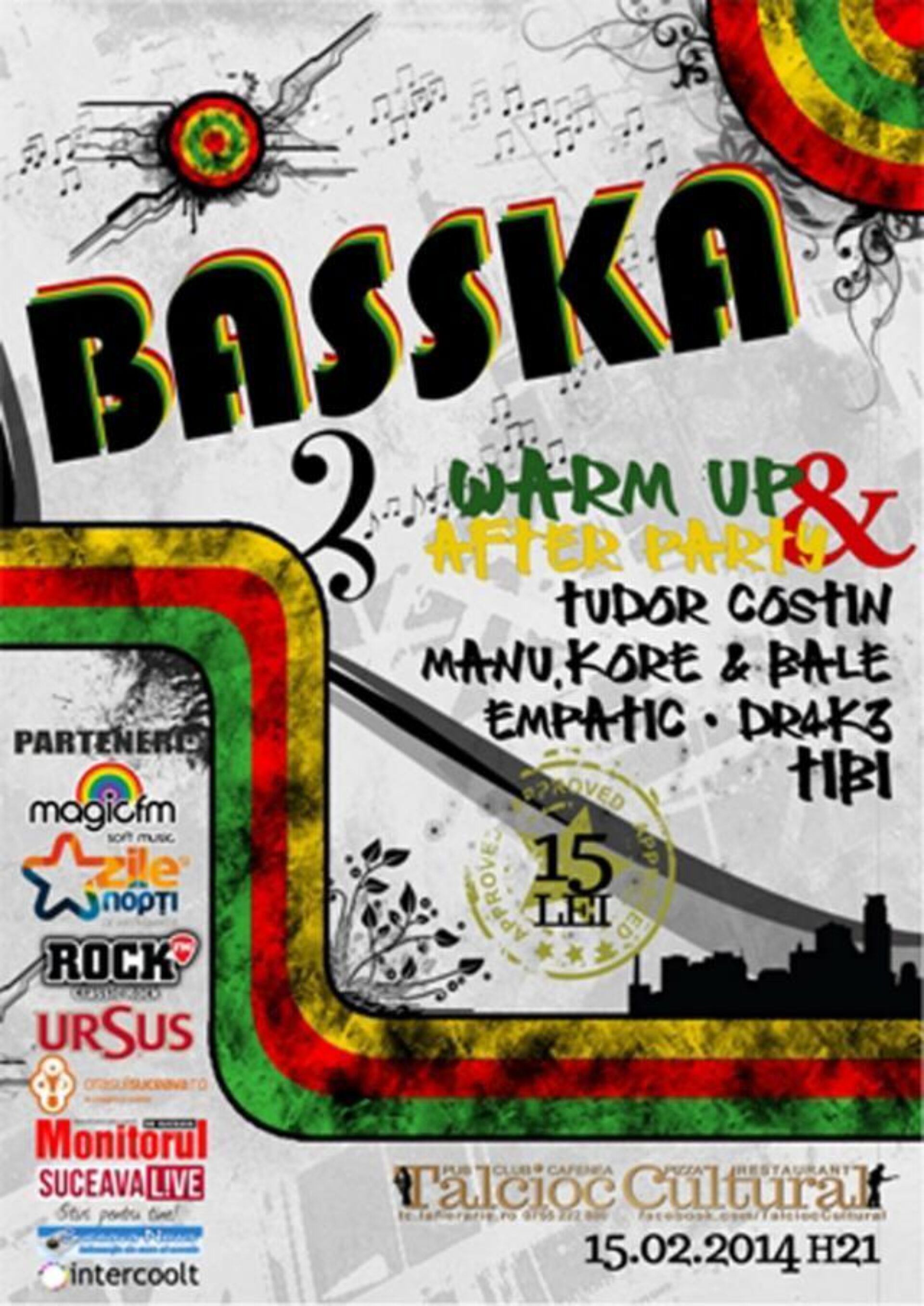 De la ora 21:00, la Talcioc Cultural – Concert live Basska. Basska nu este doar o trupă, este un concept. Soundul Basska îmbină în mod surprinzător o serie de stiluri muzicale ca Drum&Bass, Reggae, Ska, Rock, Rap și Balkan Sound. Biletul costă 15 lei.