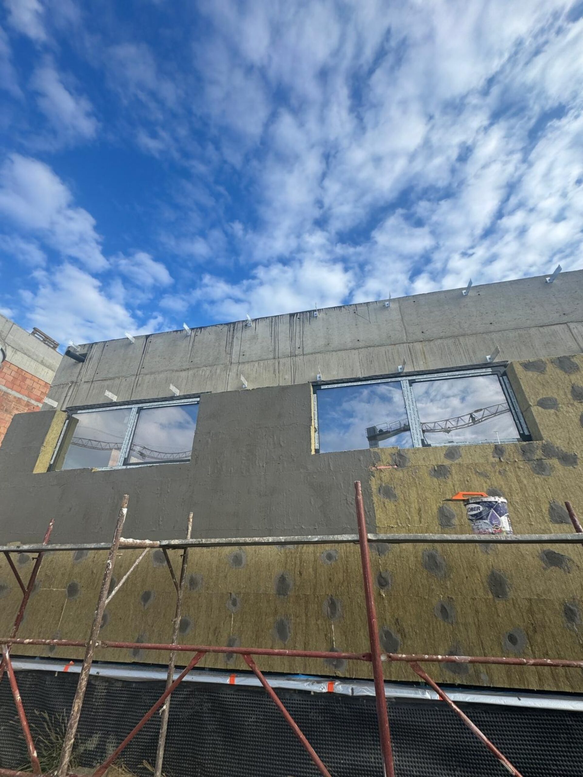 În ceea ce privește corpul B, sunt în desfășurare lucrările la termoizolația exterioară și compartimentările interioare din gips-carton.