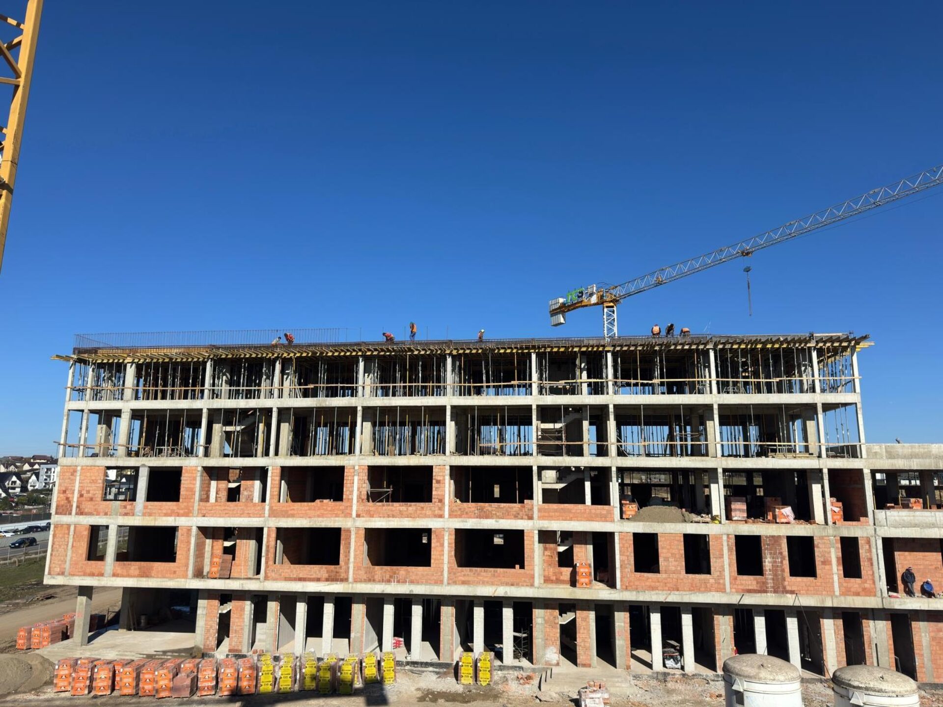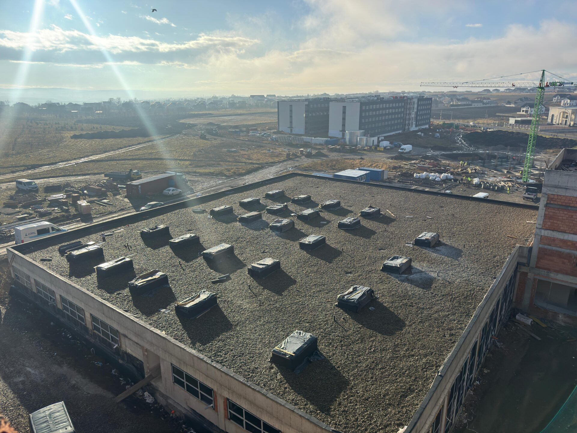 ”Se lucrează în continuare la finisajele interioare și la compartimentările din gips-carton, se montează tâmplăria exterioară și se execută lucrările la acoperișul tip terasă.