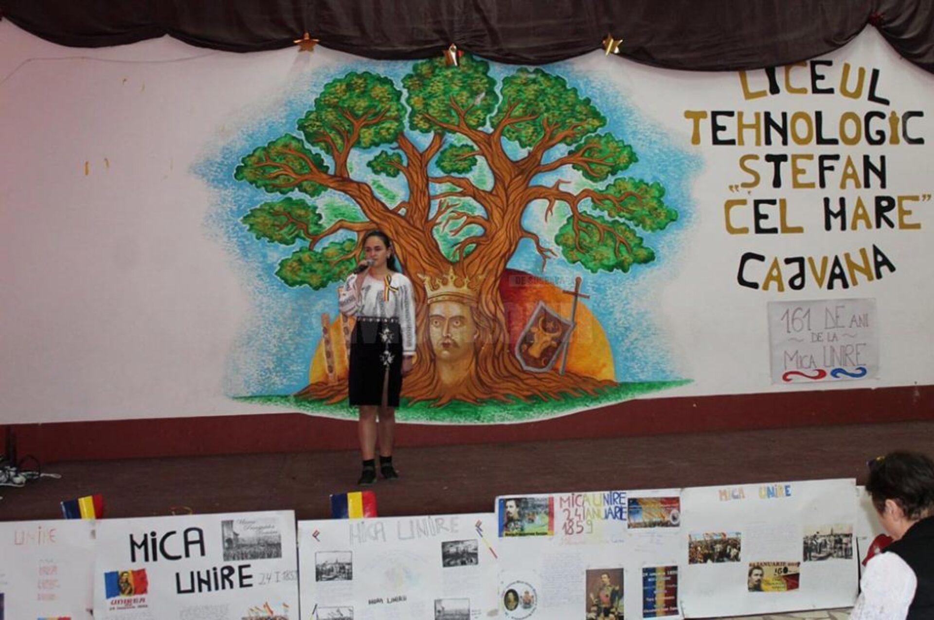 Elevii Liceului Tehnologic “Ștefan cel Mare” din Cajvana au organizat joi, 23 ianuarie 2020, activitatea “Mica Unire – moment de cotitură în istorie”, pentru a marca împlinirea a 161 de ani de la Unirea Principatelor Române. Acțiunea a fost coordonată de profesoara de istorie Casandra Ureche, prof. înv. primar Cristina Tomuț și Irina Jucan, profesoara de limba și literatura română Cristina Crăciun Pîțu, alături de profesorii de istorie, director coordonator Nicolae Robu și director adjunct Iulian Ciotu.