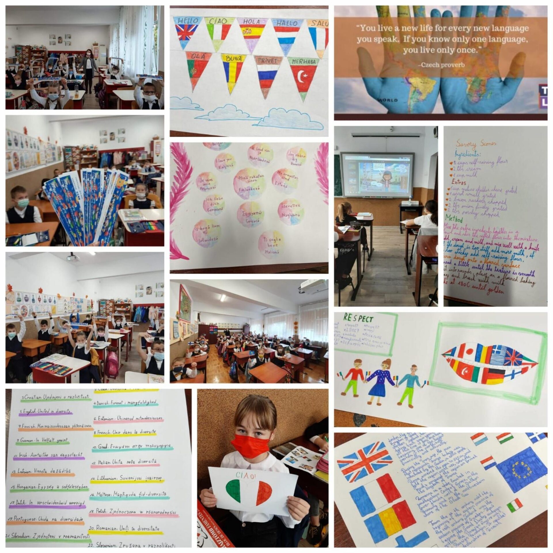 Școala Gimnazială „Miron Costin” Suceava, în parteneriat cu Inspectoratul Școlar Județean (IȘJ) Suceava, Alianța Franceză Suceava, Școala Gimnazială Nr. 3 Suceava și Liceul cu Program Sportiv Suceava, a organizat activități școlare interactive, ce au avut ca scop încurajarea învățării limbilor străine de către elevi, dar și de către părinții acestora. Cei aproape 400 de elevi implicați în acest proiect au fost foarte entuziasmați să descopere lucruri noi din alte culturi europene, reușind să-și însușească noțiuni de bază, precum salutul în mai multe limbi. „De la mic la mare, elevii din școlile sucevene doresc să aprofundeze tainele limbilor străine și să descopere noi orizonturi culturale. Profesorii «au trezit» interesul copiilor pentru studierea limbilor străine, implicându-i în activități precum: Ensemble en Europe!, Dire Salut en plusieurs langues!, Cântăm! Învățam! Ne distrăm!, Visages dʼEurope, Europe through the open window, Flags and say hello in many ways, Same values, different words!, Willing to learn languages!, European Day of language! – presentation, Deutsche lieder – audiții de cântece în limba germană sau European Languages-interesting facts”.