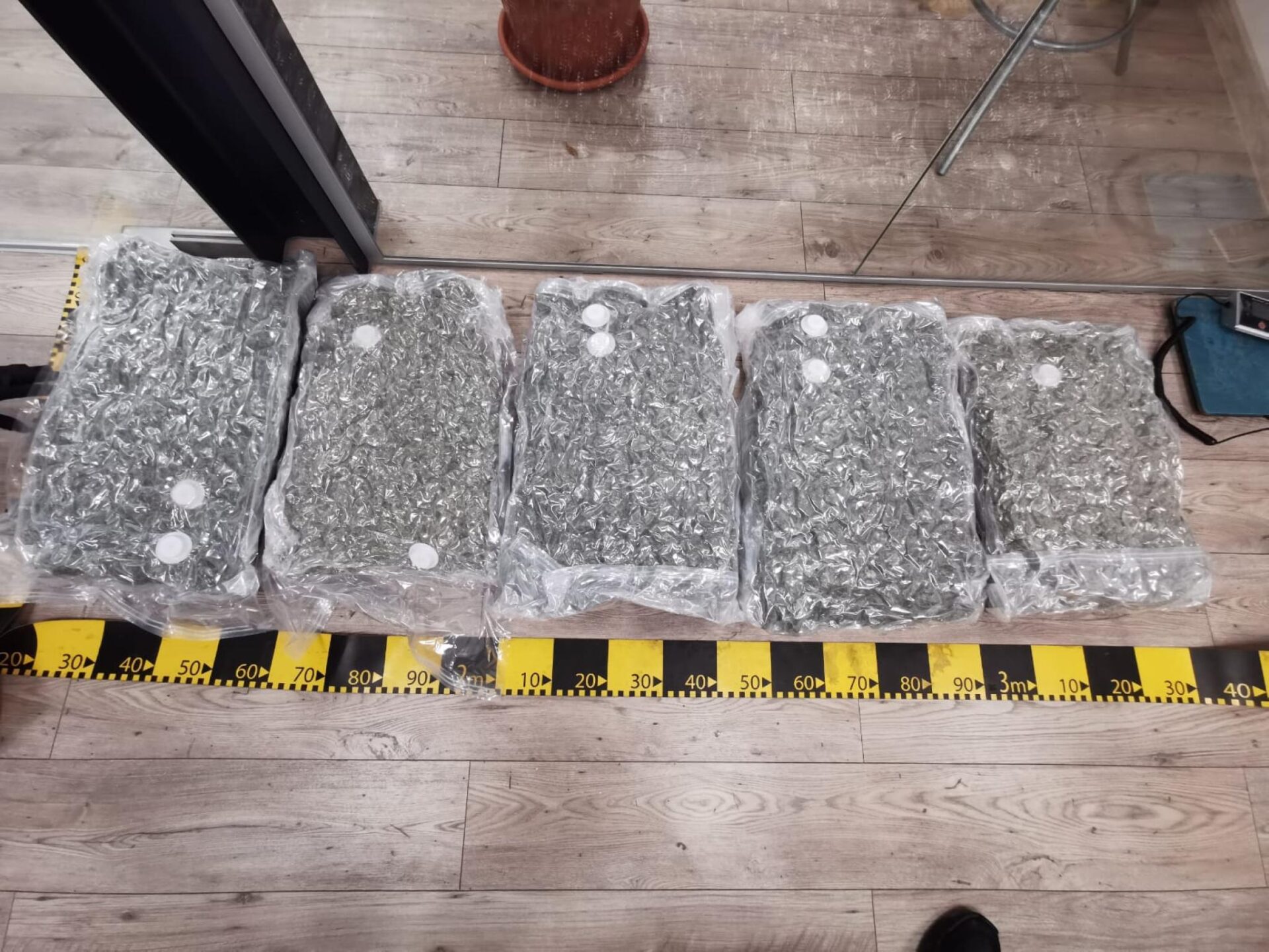 Polițiștii au ridicat cantitatea de aproximativ 10 kilograme de canabis, ambalată în pungi vidate, marfă evaluată la o valoare de piață de 600.000 de lei. În urma perchezițiilor de la domiciliul tânărului din Siret a fost ridicat un dispozitiv folosit pentru mărunțirea drogurilor, înscrisuri și sisteme informatice.