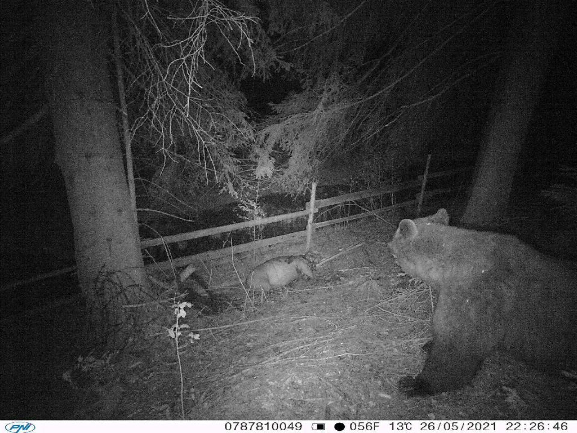 Ursul a revenit la Vatra Dornei, miercuri noapte, la leșul porcului pe care îl înhățase din adăpost luni noapte, de la o gospodărie de pe strada Poligonului din municipiul stațiune.
