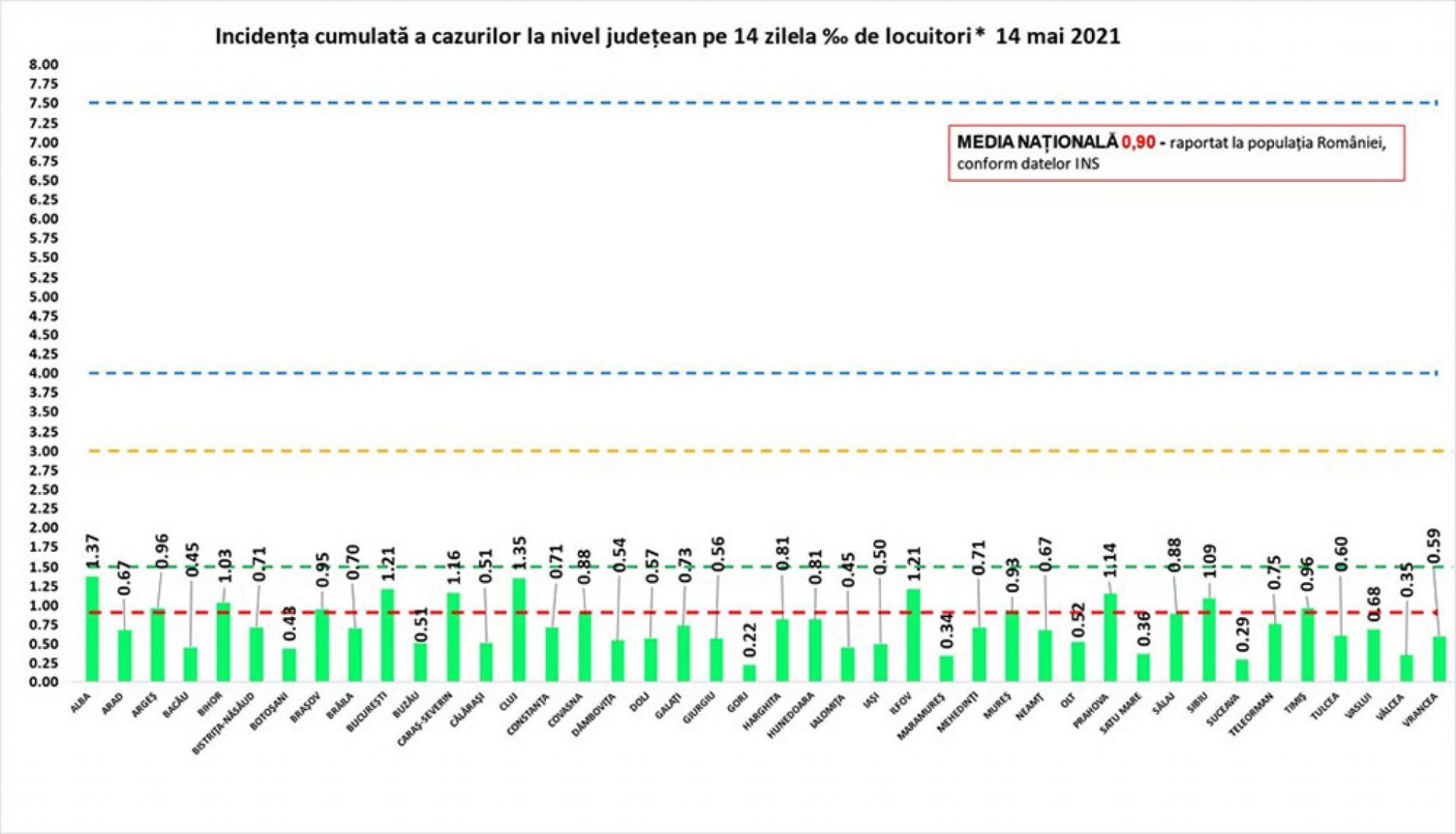 Până vineri, 14 mai, pe teritoriul României, au fost confirmate 1.070.605 de cazuri de persoane infectate cu noul coronavirus (COVID-19). 1.022.029 pacienți au fost declarați vindecați.