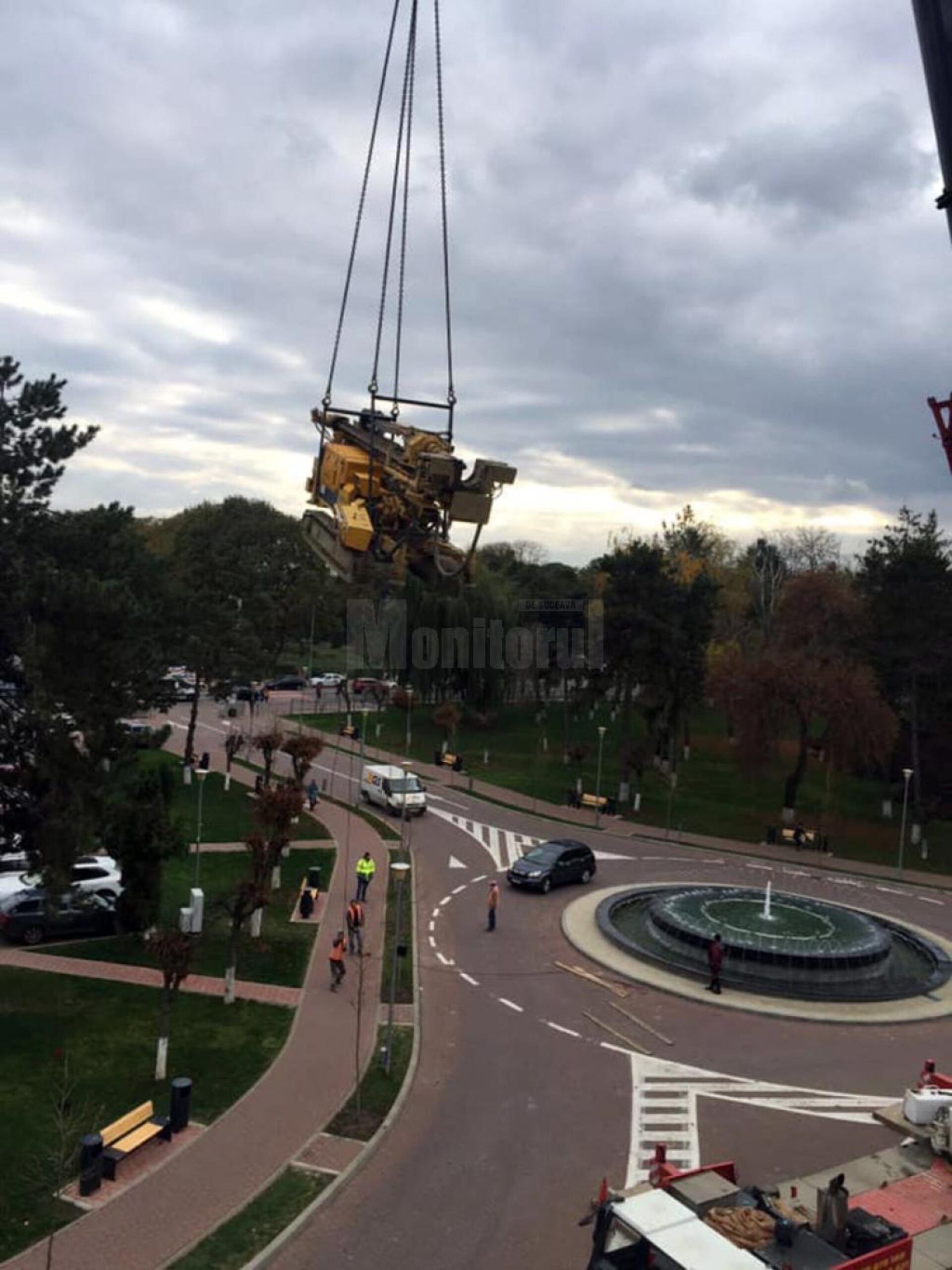 Cu ajutorul unei macarale de 130 de tone, Foreza a fost ridicată cu mare atenție în aer, până deasupra spitalului. Operațiunea s-a derulat foarte încet, pentru a preveni balansul. Foreza a fost poziționată cu precizie deasupra amplasamentului și apoi a fost coborâtă de asemenea foarte încet, după care utilajul de forare a fost plasat pe poziția de lucru.Fotografii de la fața locului au fost postate pe pagina de Facebook a firmei Damifor Tehnic, specializată în domeniul forajelor pentru construcții.