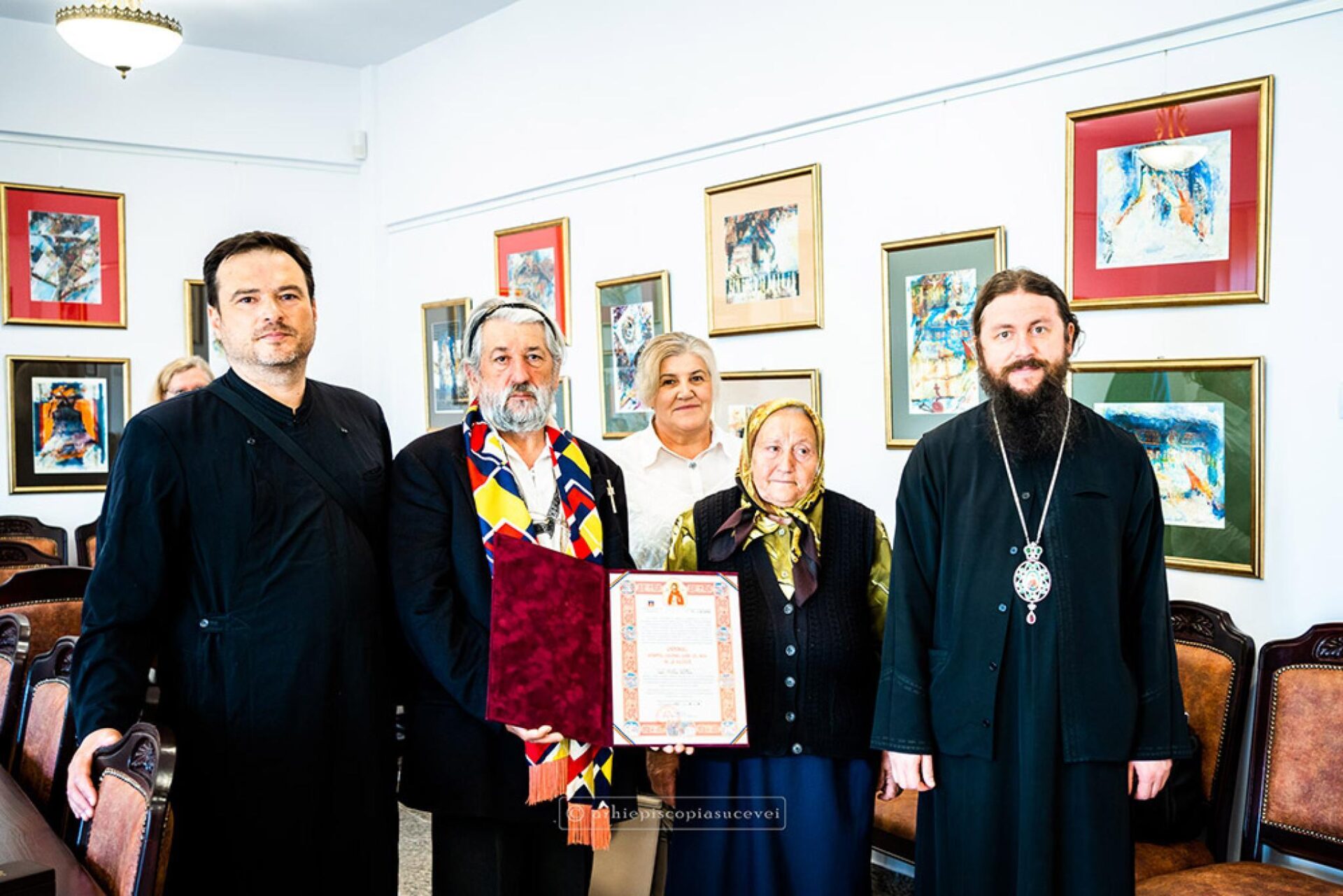 Distincția a fost înmânată de Preasfințitul Părinte Damaschin Dorneanul, Episcop-Vicar, în prezența familiei artistului și a membrilor personalului Centrului Eparhial.