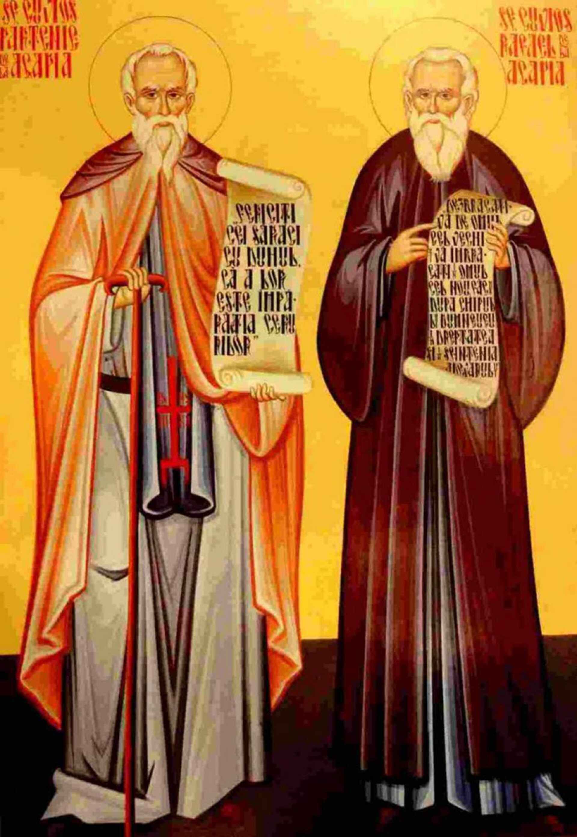 Ucenic al starețului Eufrosin, ctitorul mănăstirii din Livada Părinților, primește din mâinile acestuia tunderea în schima monahală. Cât a petrecut în viața de obște, cât s-a nevoit în sihăstrie, nu putem ști. Tradiția spune despre el că a sihăstrit în muntele Scaunele, după pilda părinților de odinioară. Nevoința lor era aceasta: ziua se rugau în singurătate, mai ales cu Psaltirea, pe care o știau pe dinafară, iar la apusul soarelui, gustau puțin din pâine și legume fierte, după care toată noaptea se nevoiau rugându-se cu mintea (rugăciunea lui Iisus), iar cu mâinile împletind coșuri. Ațipeau doar câte puțin când oboseau, în lavițe (scaune), așezate între trunchiurile de brazi. Această nevoință continua fără întrerupere până dimineața. Ucenicii duceau coșurile la târg, unde le vindeau, iar cu banii astfel câștigați, cumpărau hrană și cele necesare traiului pustnicesc. De la aceste scaune muntele și poiana primit numele de Scaune.