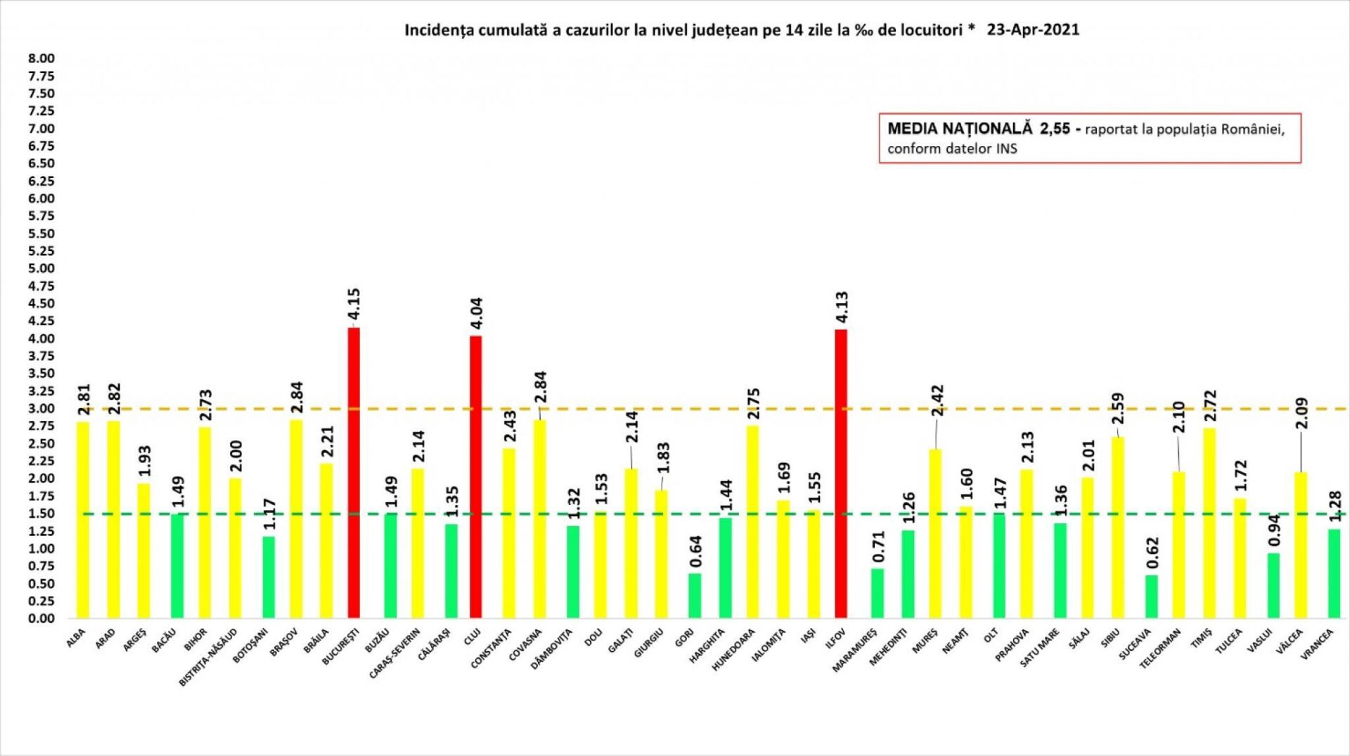 Vineri dimineață în județul Suceava au fost înregistrate 25 de cazuri noi de infectare cu SARS-CoV-2 și 16 persoane reconfirmate pozitiv la retestare, din 1.129 de suceveni testați. În țară au fost înregistrate 2.523 cazuri noi, din aproape 37.000 de persoane testate. În intervalul 22-23 aprilie, au fost efectuate 24.386 de teste RT-PCR (13.118 în baza definiției de caz și a protocolului medical și 11.268 la cerere) și 12.923 de teste rapide antigenice. Peste 100 de cazuri noi au județele Brașov – 105, Cluj – 147, Ilfov – 106, Mureș – 102, Prahova – 114 și municipiul București – 470.