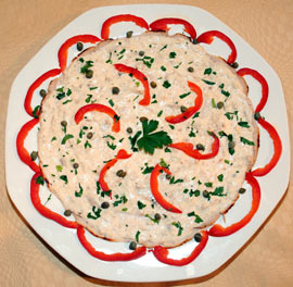 Se feliază cotletul care a fost fiert în prealabil după care se amestecă tonul, maioneza, muștarul, gogoșarii și caperele, adăugându-se uleiul de măsline și zeama de lămâie.