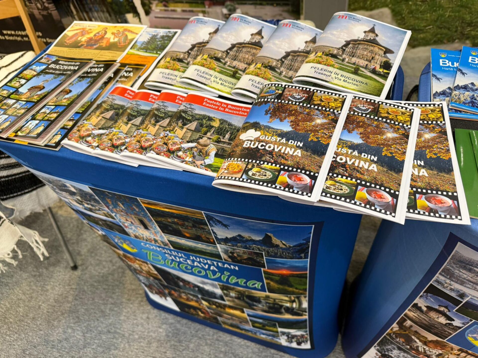 Consiliul Județean Suceava participă până la finalul acestei săptămâni la Târgul de Turism al României, organizat la Romexpo București, cu un stand de 40 mp dedicat promovării destinației turistice Bucovina. În cadrul standului, vizitatorii primesc un pașaport turistic al Bucovinei, Consiliul Județean Suceava pregătind nu mai puțin de 400 de exemplare pentru cei care vor să aibă acest document simbolic. De asemenea, vizitatorii sunt invitați să descopere oferte speciale pentru sfintele sărbători pascale, care includ experiențe autentice și numeroase posibilități de petrecere a timpului liber în județul Suceava.