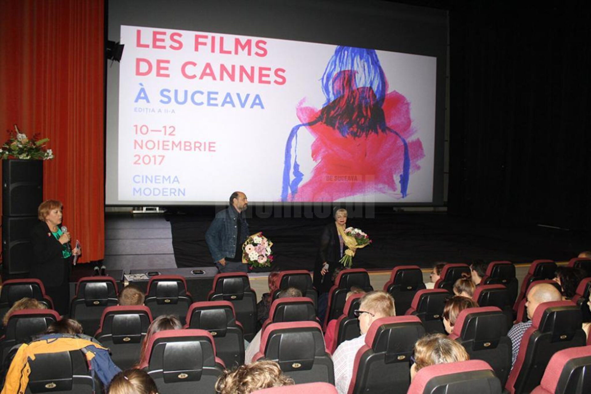 Cei doi invitați speciali au fost primiți cu buchete de flori, dar și cu un cuvânt de bun venit din partea unui reprezentant al municipalității sucevene, consilierul local Angela Zarojanu, iar la finele filmului, au stat de vorbă cu publicul, pe săturate.