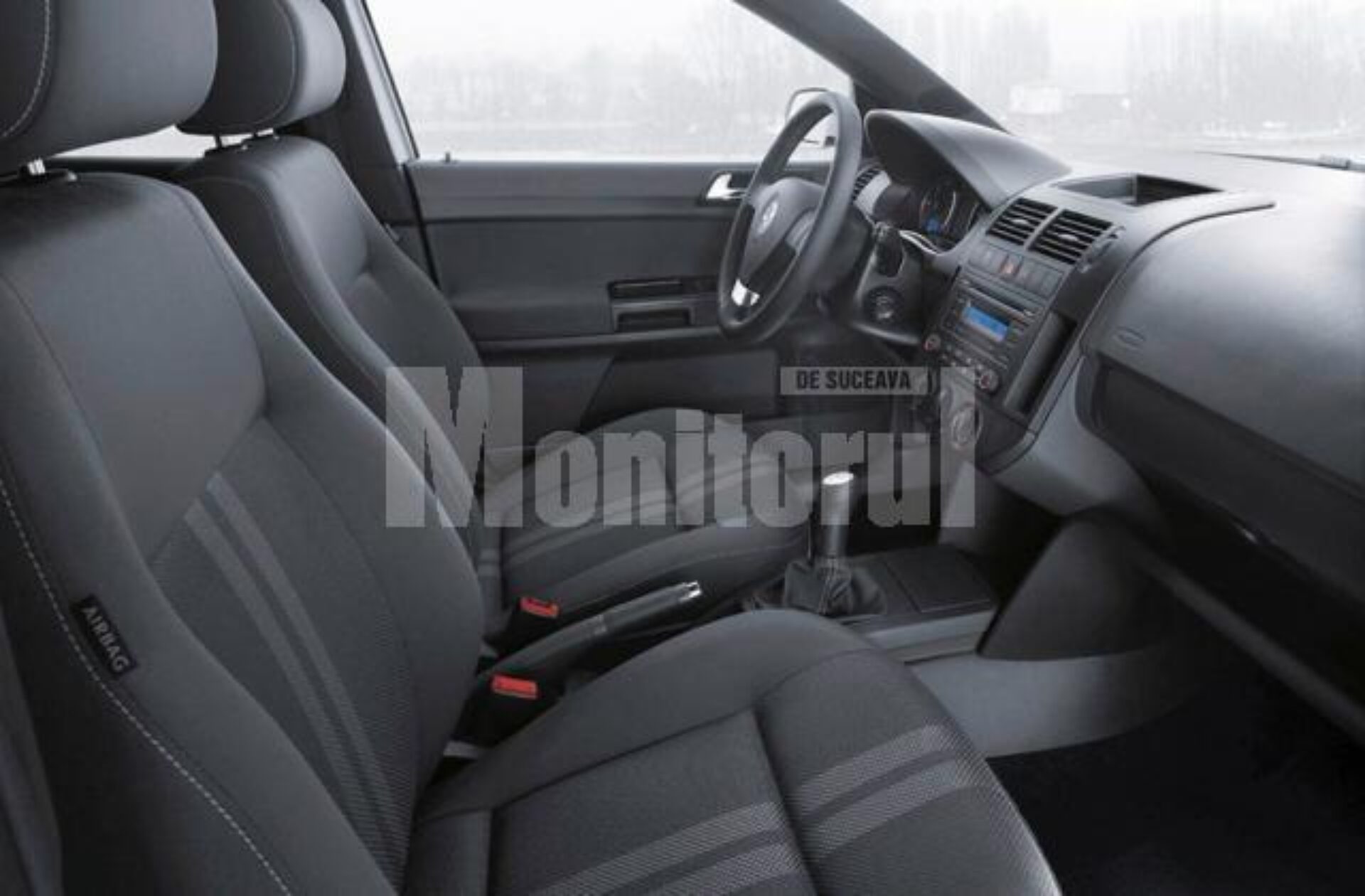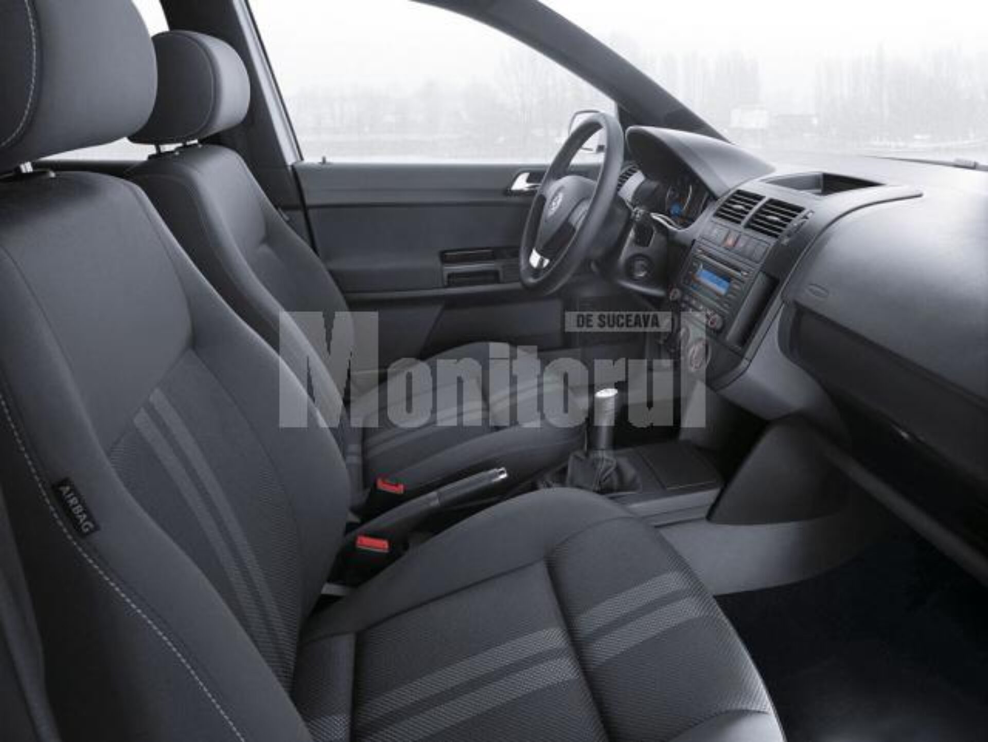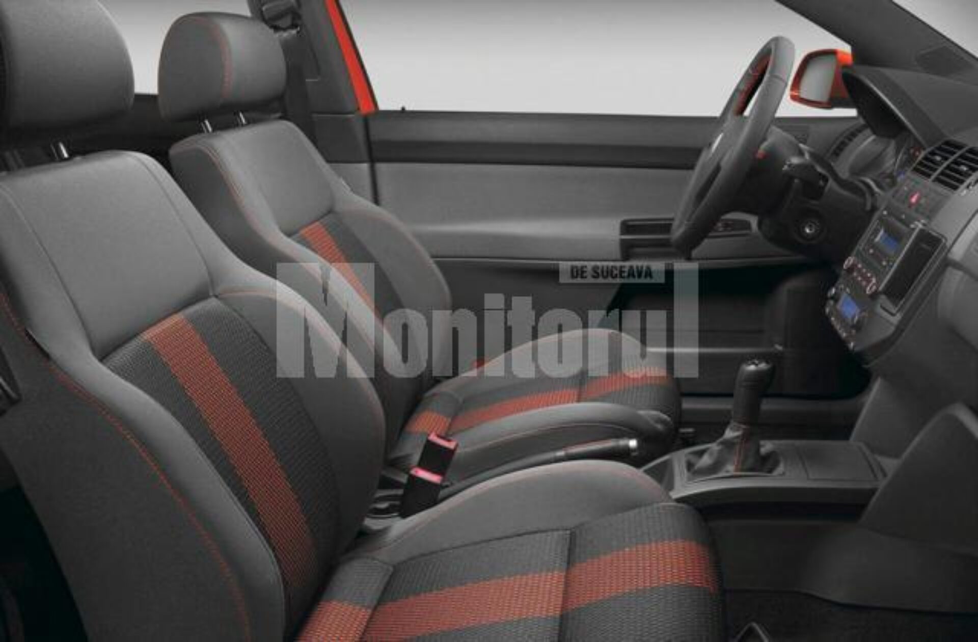 La interior regăsim scaune sport tapisate cu material textil vopsit în două nuanțe roșu și gri închis, transpunere coloristică aflată și pe volanul din piele, schimbătorul de viteze sau frâna de mână.