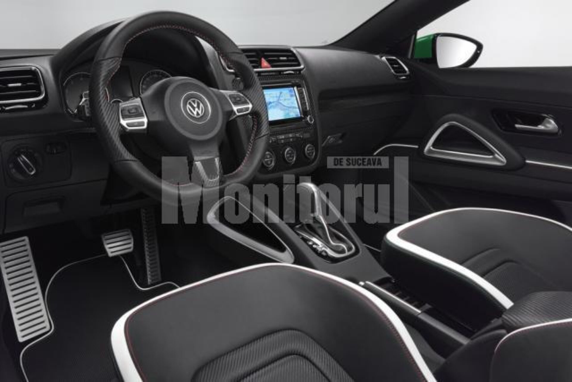 Scirocco Studie R dispune de jante de 19 inch, din alumniu polisat, cu un design unic și un interior ce abundă în elemente de natură sportivă, de la scaunele Recaro, tapisate cu piele Nappa, la volanul sport, la inserturile din aluminiu și cele care imită fibra de carbon. Culoarea care predomină în habitaclu este negrul, în timp ce exteriorul este dominat de un alb perlat. Se pare că și Volkswagen agrează contrastul alb-negru, mereu la modă, și tot mai des întâlnit la mașinile sportive.