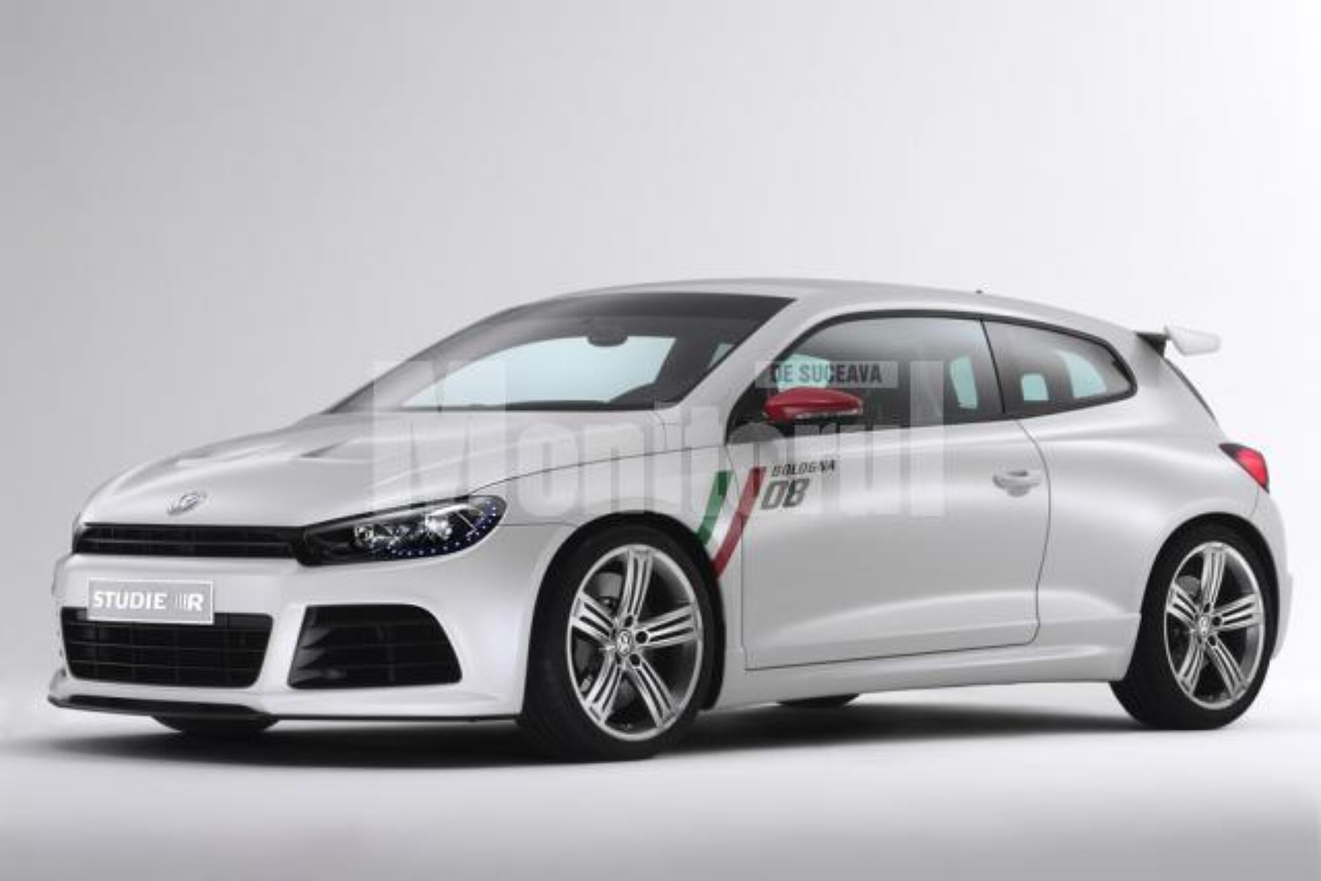 Volkswagen s-a simițit la Bologna ca la el acasă. Constructorul a fost din nou la înălțime, demonstrând încă o dată că nu degeaba este numărul 1 în Europa. Pe lângă faptul că a avut cel mai mare număr de exponate, germanii au transformat salonul auto într-o scenă a premierelor absolute. Volkswagen a monopolizat audiența cu cinci debuturi, din care patru au revenit mașinilor de serie și unul pentru un prototip surpriză. Vedeta standului a fost fără Scirocco Studie R, un concept care a atras ca un magnet vizitatorii sosiți în număr record la Bolgna Motor Show. Mașina se inspiră din versiunea de performanță Scirocco GT24, care a câștigat prima poziție la clasa compact-coupe, în cursa de anduranță din Germania, organizată în luna mai, pe circuitul Nurburgring. Intenția germanilor a fost de a prezenta publicului de la salon o prefață la o posibilă versiune de stradă a mașinii de curse GT24, firește adaptată estetic și tehnic.