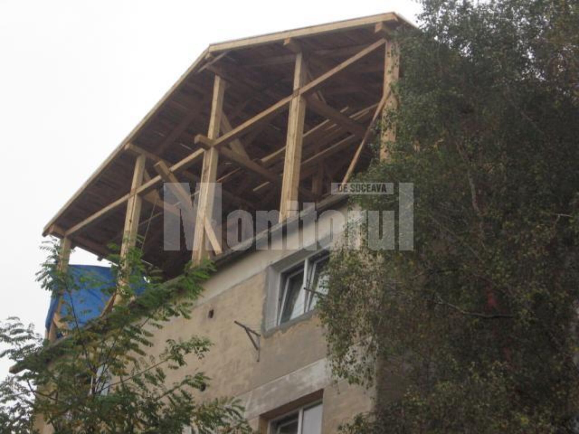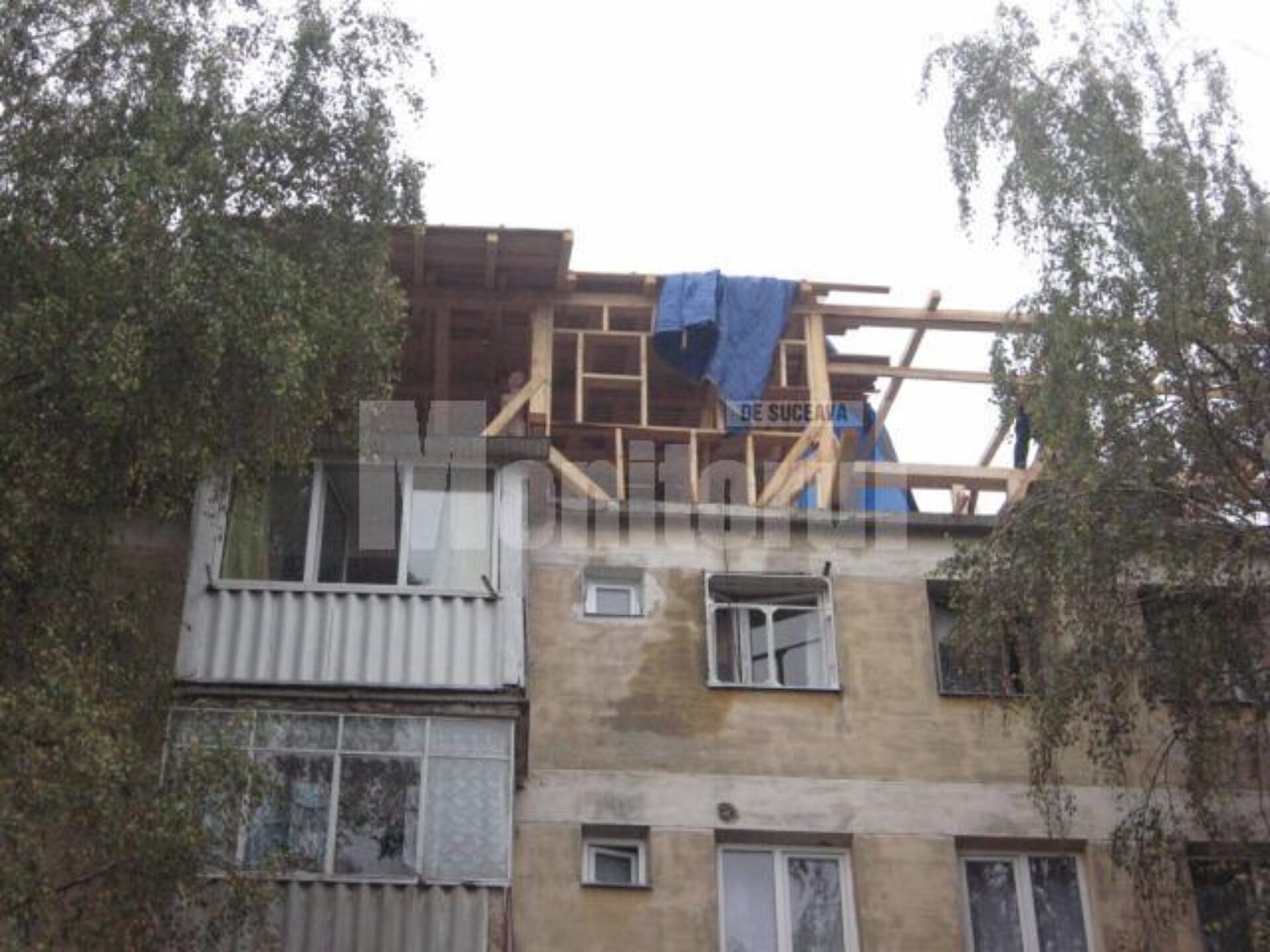 A găsit dezastru în casă Toate problemele au apărut după ce prelata pusă pe bloc de muncitorii de la firma Alfa House Construct, care lucrează la mansardă, a fost ruptă de vânt. Apa s-a infiltrat cu ușurință în pereți, astfel că locatarii de la ultimul nivel au trebuit să stea ore întregi cu lighenele în mană pentru a scoate apa și salva bunurile din casă.