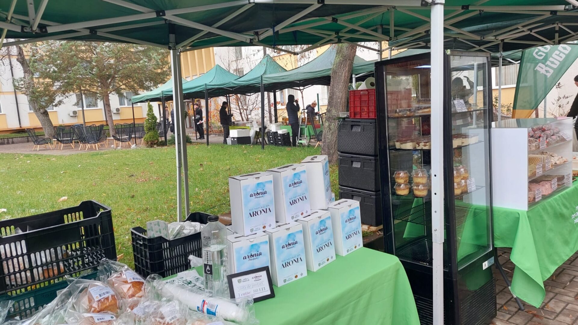 Alexandru Andrieși, cofondator și președinte al consiliul de administrație al Asociației „Gustă din Bucovina”, a venit la piața din campus cu suc de aronia. El are la Hănțești o plantație de aronia de 4,6 hectare, certificată ecologic. Printre beneficiile cunoscute ale consumului de aronia, Alexandru Andrieși a amintit reglarea glicemiei, a tensiunii arteriale și a nivelului colesterolului, efectul antibacterian și cel energizant.