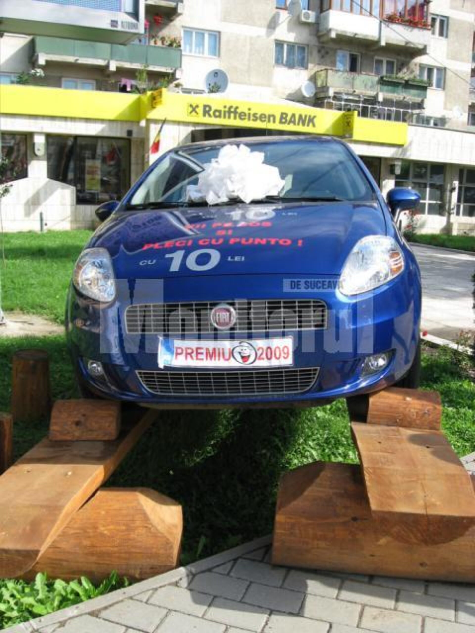 Ca să nu fac vreo confuzie, cineva mi-a atras atenția că nu aceasta este mașina care se oferă ca premiu Marelui Câștigător al Zilelor Humorului, ci FIAT-ul din imediata apropiere („Vii pe jos și pleci cu Punto!), așa că am continuat căutarea barabulei pe care am găsit-o până la urmă peste drum, la Târgul Meșterilor Populari.