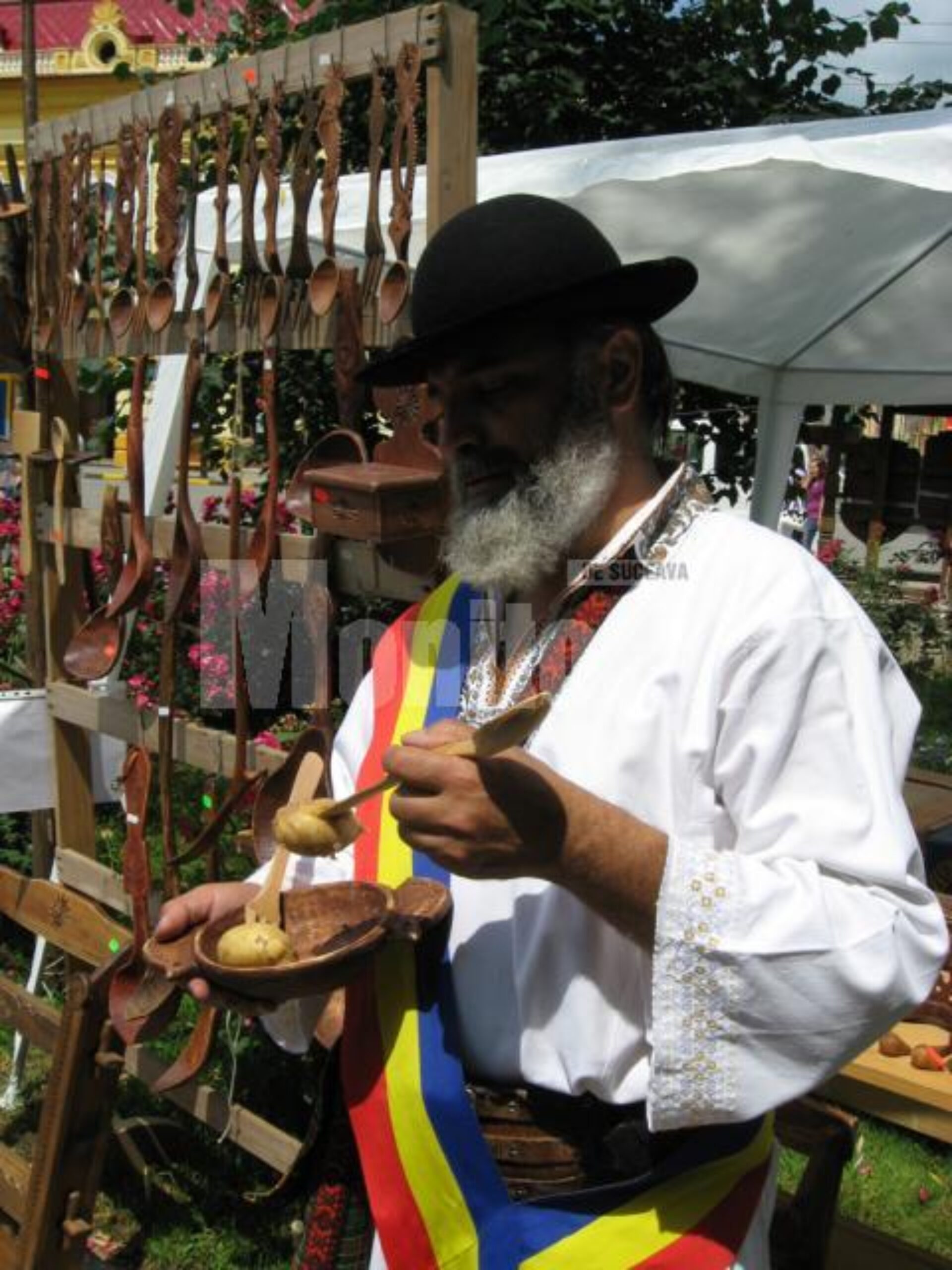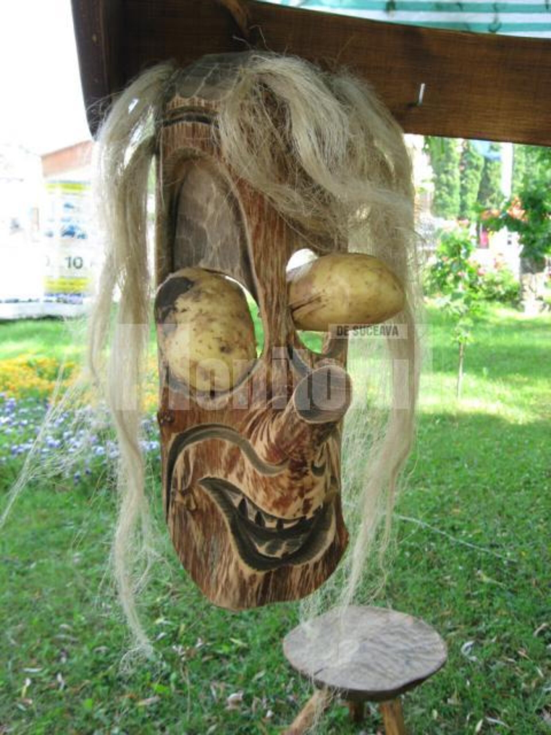 Am găsit-o în mai multe exemplare, fie umplând găvanele ochilor uneia dintre măștile cioplite de meșterul Toader Ignătescu (mască pe care i-a dăruit-o edilului Marius Ursaciuc cu urarea „Așa să li se bulbuce ochii dușmanilor!”), fie într-un castron (străpunsă de o furculiță și de coada unei linguri de lemn) ținut cu fală de Florin Cramariuc, starostele meșterilor populari bucovineni, care purta diagonala tricoloră a primarului „decăzut” din drepturi (și obligații) până la sfârșitul festivalului.