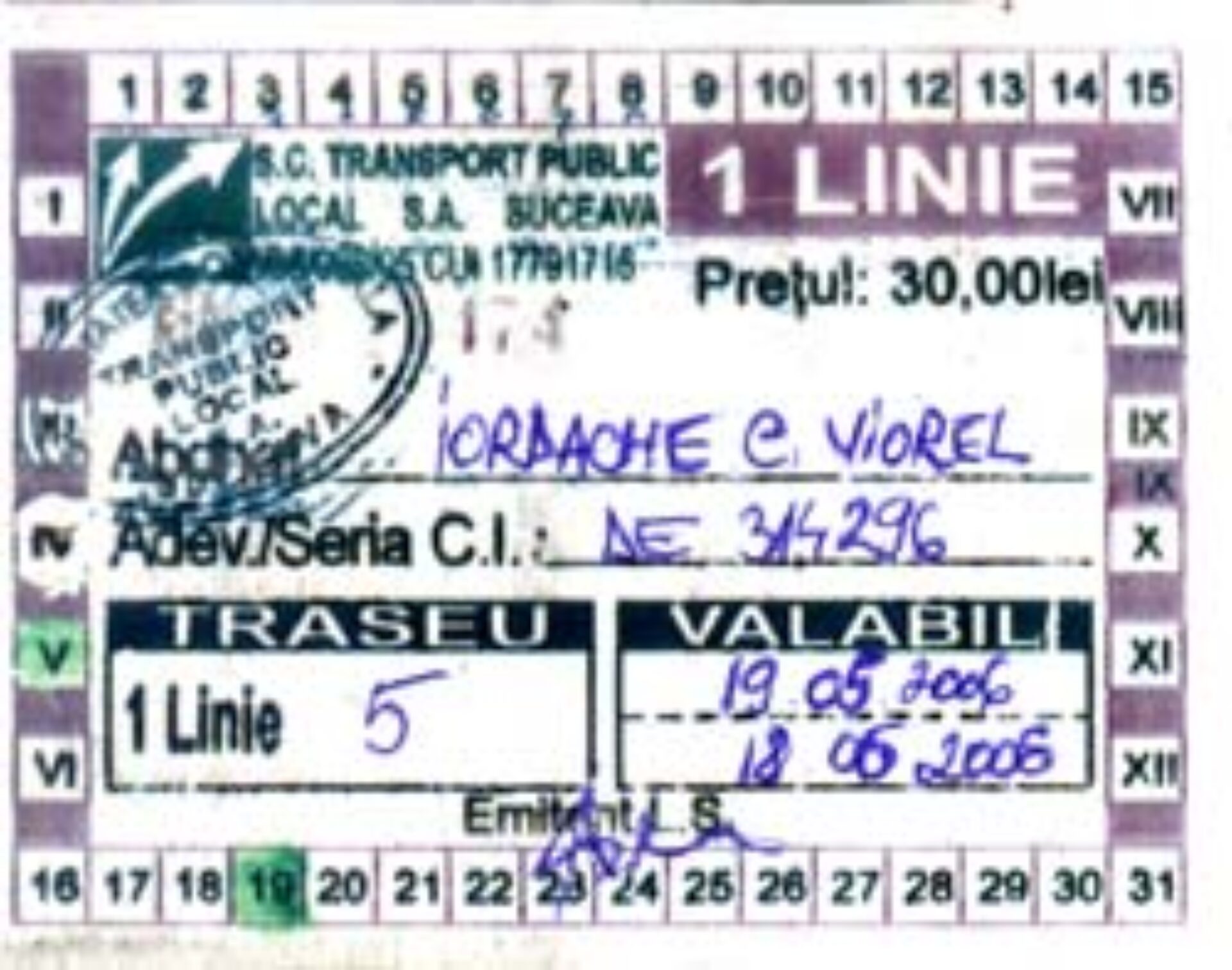 La nici două luni de la introducerea unui nou sistem de abonamente pe liniile de transport public ale TPL, controlorii de pe autobuze au depistat zeci de suceveni care utilizau abonamente false, unele reproduse cu stângăcie, cu ajutorul computerului, altele fiind modificate grosolan, prin ștergerea datelor inițiale și adăugarea altora.