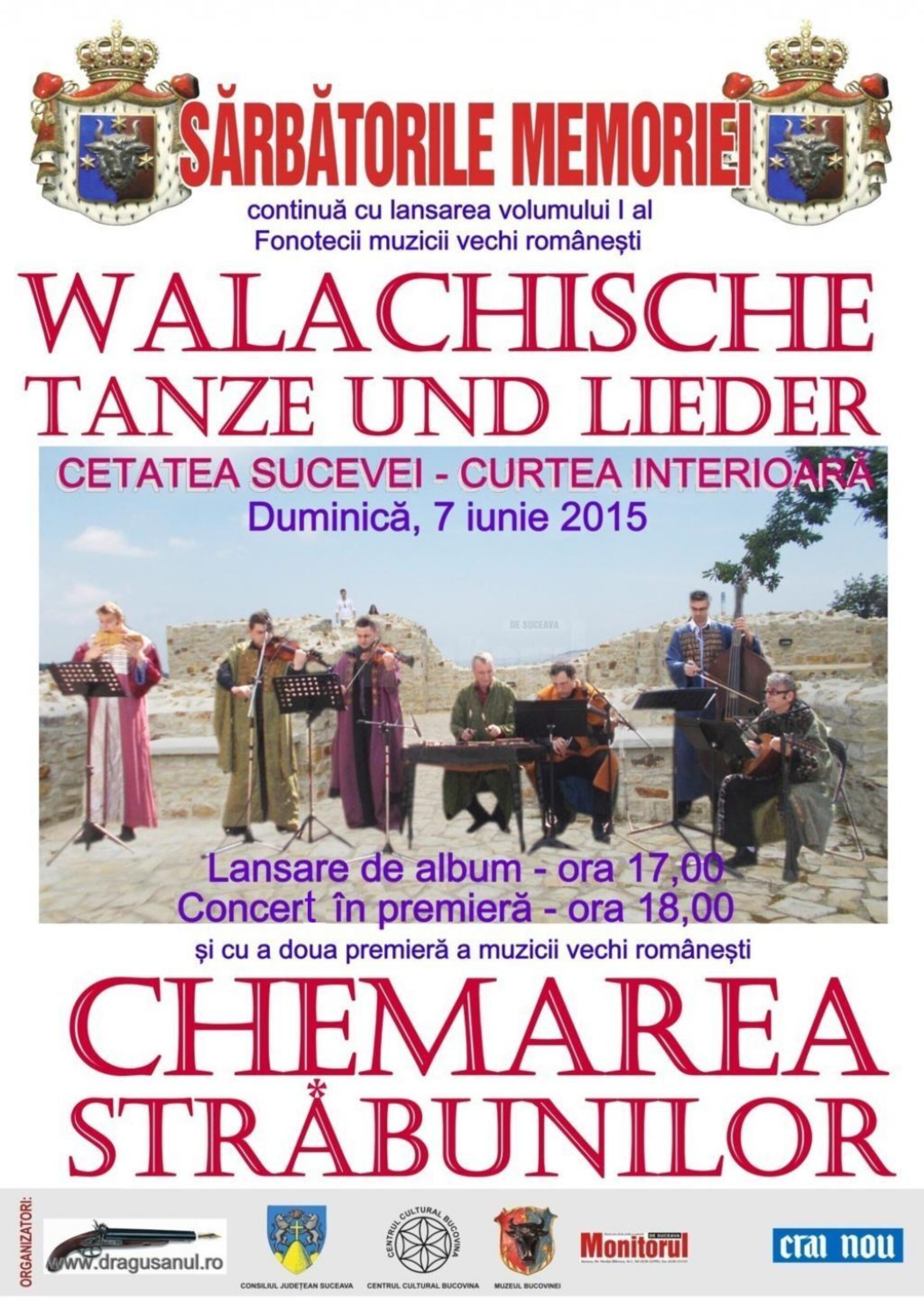 „Zicălașii”, formația de muzică veche românească, nășită de scriitorul Ion Drăgușanul, care a debutat în primăvara acestui an cu un spectacol cu un repertoriu ales, cu muzici care au răsunat cândva la curțile voievodale și boierești dar și la iarmaroacele de altădată, își vor lansa primul album și vor concerta în Cetatea de Scaun a Sucevei duminică, 7 iunie a.c., începând cu ora 17.00.Cei șapte muzicieni care alcătuiesc acest grup muzical (starostele Petru Oloieru, primașul Narcis Rotaru, secundul Adrian Pulpă, cobzarul și zicălașul Constantin Irimia, contristul Răzvan Mitoceanu, gordunistul Ionuț Chitic și năierul Gabriel Hurjui), care în cea de-a doua zi a Sărbătorii Pascale au concertat în Parcul Central al Sucevei, în fața bustului voievodului Petru Rareș, vor avea cea de-a doua premieră a muzicii vechi românești în cetatea ctitorită de Petru I Mușatinul. Cântecelor românești li se vor adăuga și „câteva cântece ale naționalităților bucovinene, două cozak-uri ucrainene, o mazurcă și o polcă, dar cântecul țigănesc din care descinde ”.La ora 17.00 va fi prezentat și audiat mai întâi albumul (40 de minute de înregistrare), după care va avea loc concertul susținut de grupul „Zicălașilor”.