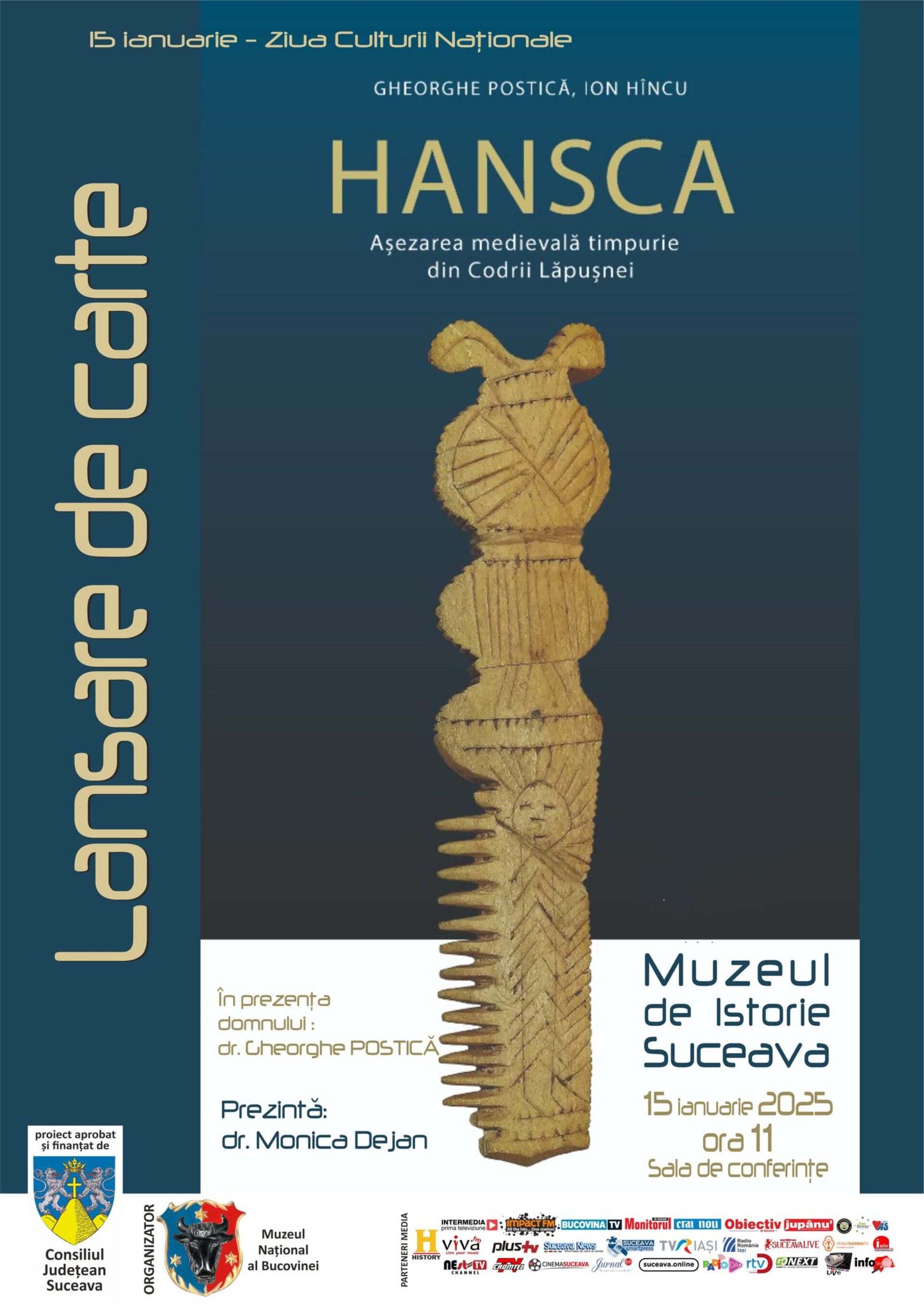 Începând cu ora 11.00, la Muzeul de Istorie, în Sala de conferințe, va avea loc lansarea volumului „Hansca, așezarea medievală timpurie din Codrii Lăpușnei”, semnat de Gheorghe Postică și Ion Hîncu. Prezentarea cărții va fi realizată de dr. Monica Dejan. Intrarea este liberă.