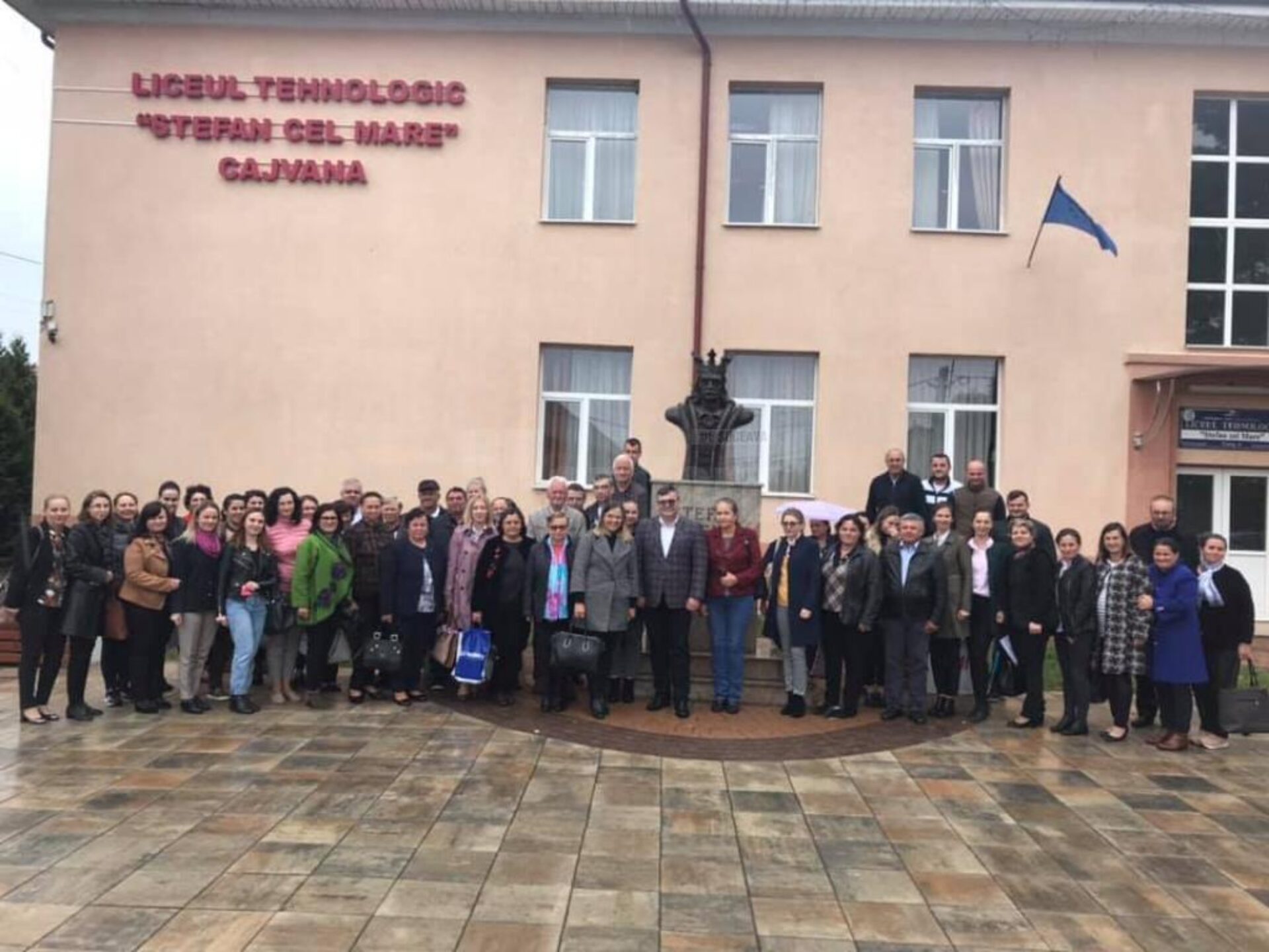 Reprezentantul Sindicatului, profesor Gheorghe Aurelian Onoi, împreună cu reprezentanții unității, directorii coordonator prof. Nicolae Robu și adj. prof. Iulian Ciotu, respectiv Marius Crăciun Pîțu au „îndulcit” activitatea cu un tort ornat semnificativ zilei de 5 octombrie, Ziua Educației… “La mulți ani, stimați dascăli de la Liceul Tehnologic «Ștefan cel Mare» din Cajvana!”, a transmis prof. înv. primar Lidia Loredana Seserman, responsabilă cu promovarea imaginii Liceului Tehnologic “Ștefan cel Mare” Cajvana.