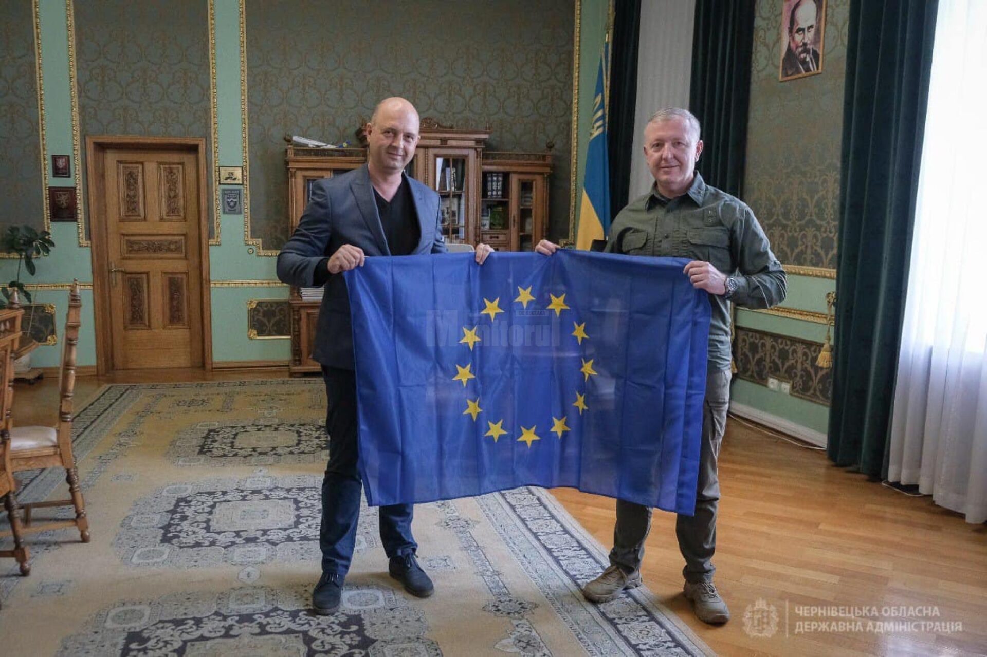 Pentru a întări solidaritatea europeană și a partenerilor pe care Ucraina îi are în România și care și-au arătat deschiderea și susținerea față de poporul ucrainean, Ziua Europei a fost marcată și la Cernăuți, prin vizita pe 9 mai la șeful Administrației Militare Regionale Cernăuți, Serghei Osachuk, a directorului executiv BRCT Suceava, Cezar Grozavu.