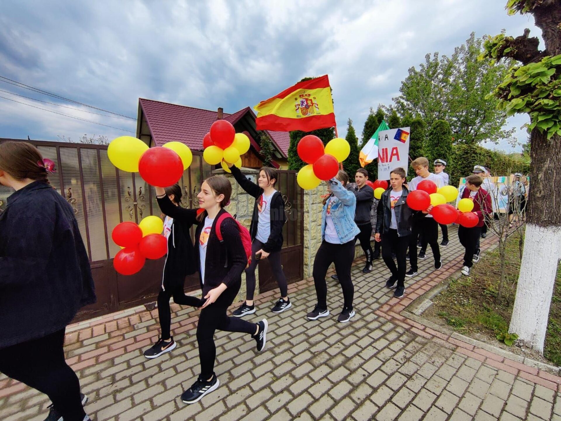 Ziua a debutat la ambele școli, Milișăuți și Bădeuți, cu mottoul „Împreună pentru PACE în lume!”, mesaj scris pe pancartele de prezentare ale echipelor concurente. Elevii au ilustrat prin costume și diferite simboluri țări membre ale Uniunii Europene: Portugalia, Franța, Italia, Croația, Grecia, Germania, Polonia, Irlanda, Belgia, Olanda, Spania. Marșul european a pornit cu cântece și strigăte de entuziasm spre Casa de Cultură a orașului, locuitorii și trecătorii putând admira coloratura fiecărei clase. Poliția orașului Milișăuți a fost alături de noi, ca de obicei, însoțind grupul mare de copii pe drumul public dintre Școala Milișăuți și centrul orașului. În fața Casei de Cultură, elevii de la Bădeuți și-au așteptat colegii de la Milișăuți, bucuroși de aplauzele trecătorilor și de privirile pline de admirație.