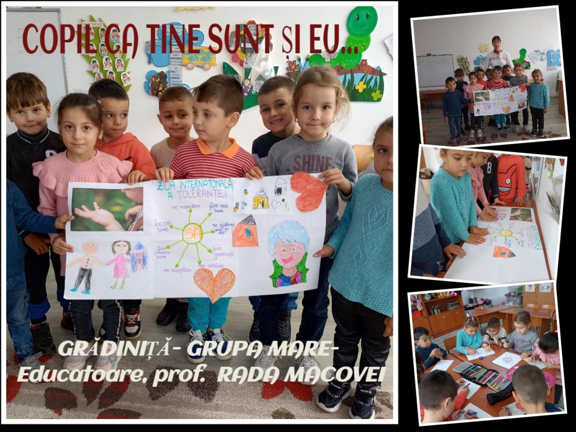 Activitatea clasei I-a B, condusă de prof. înv. primar Floarea Guță, a reliefat conceptul de toleranță „drept o însușire a oamenilor înțelepți și buni”. Elevii au discutat despre fapte și atitudini care definesc comportamente pozitive, în final, concluzionând că toleranța este formată în timp, prin exercițiu.